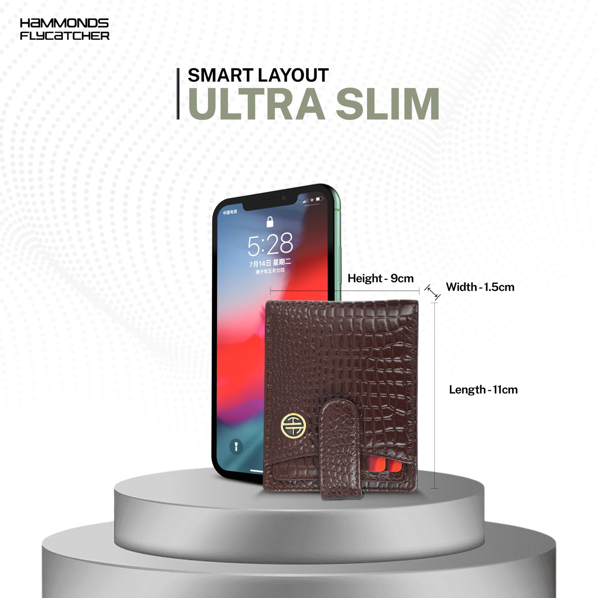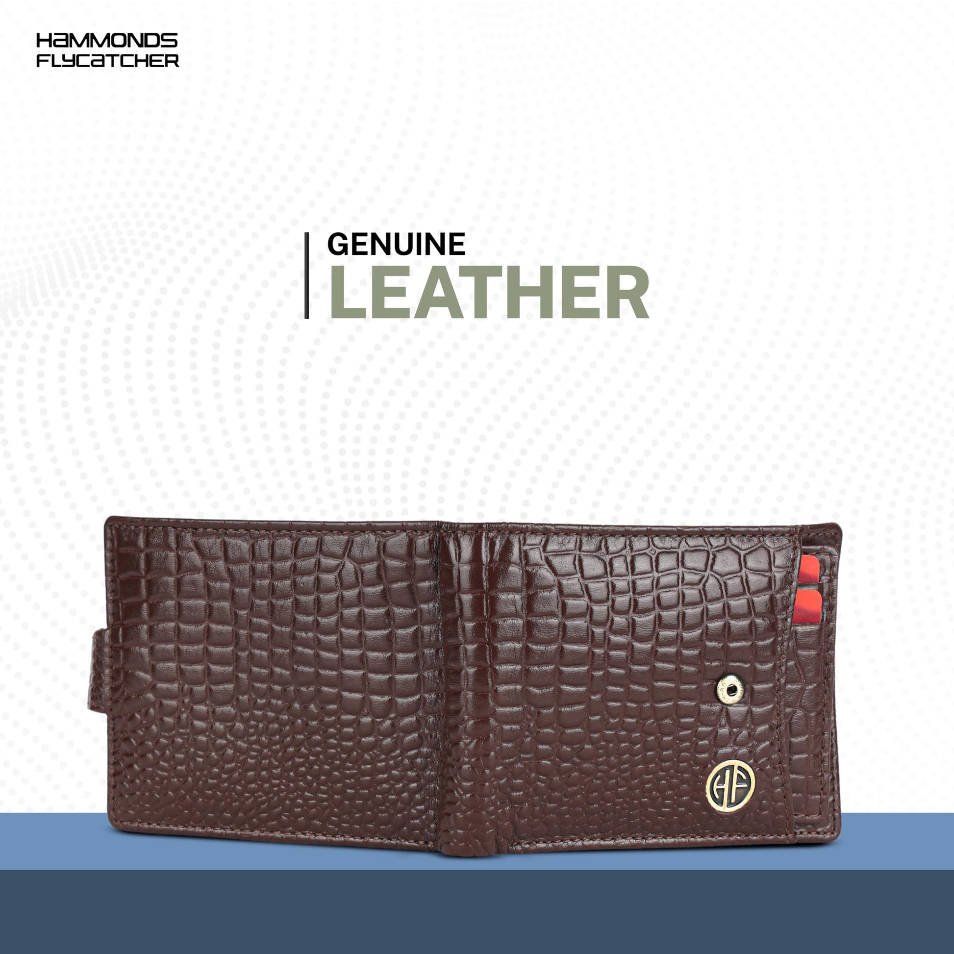 HAMMONDS FLYCATCHER Wallet for Men Leather Original, Mens Wallet, Leather Wallets for Men Stylish, Bi-Fold Wallets for Man, 5 Card Slots, Easy Access Card Slots, Coin Pocket, Mens Gift - Croc Redwood