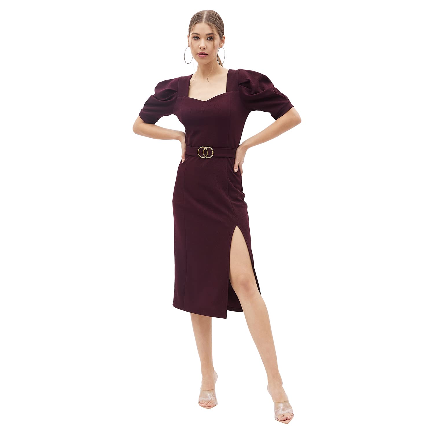 Harpa Women's Polyester Standard Length Dress Wine_XS