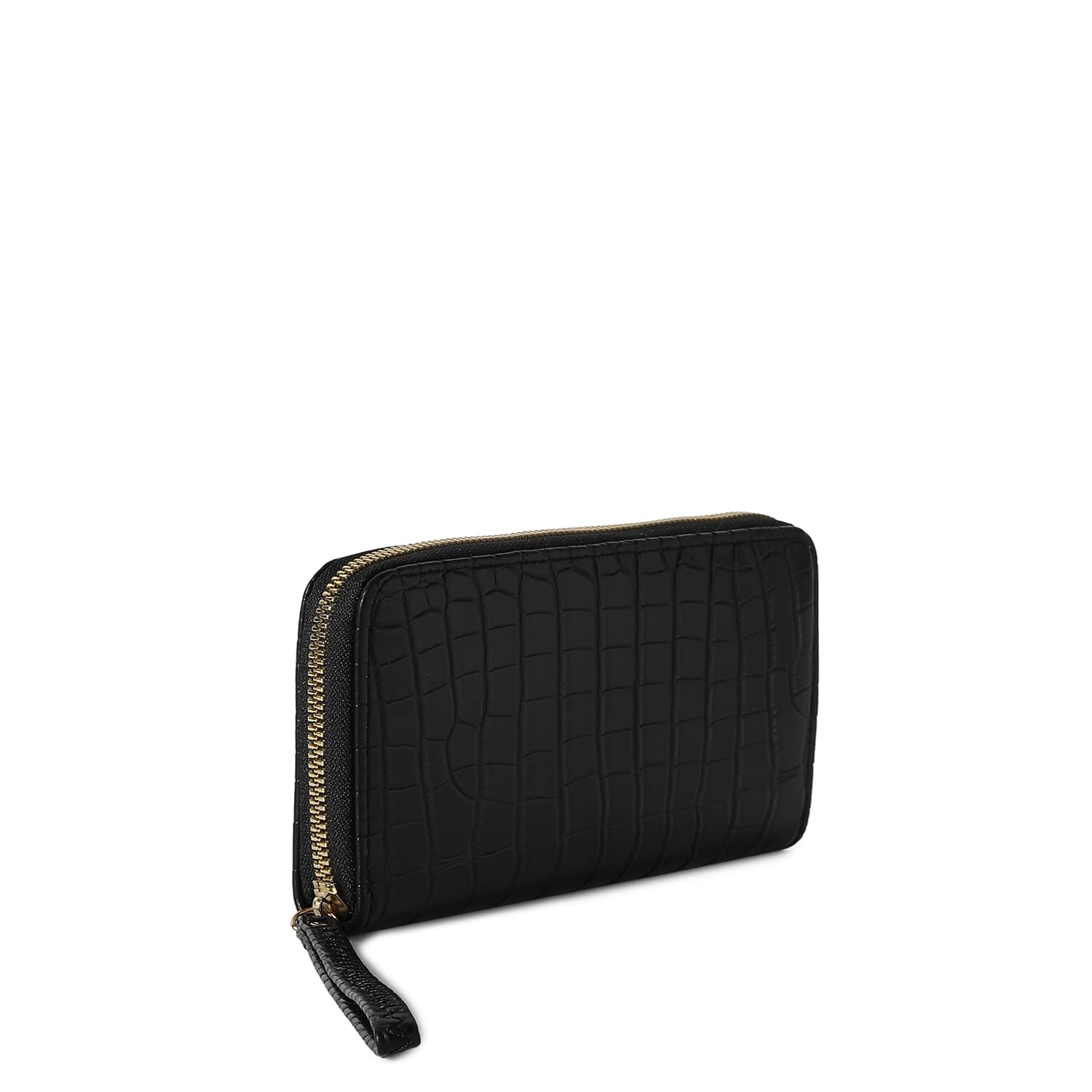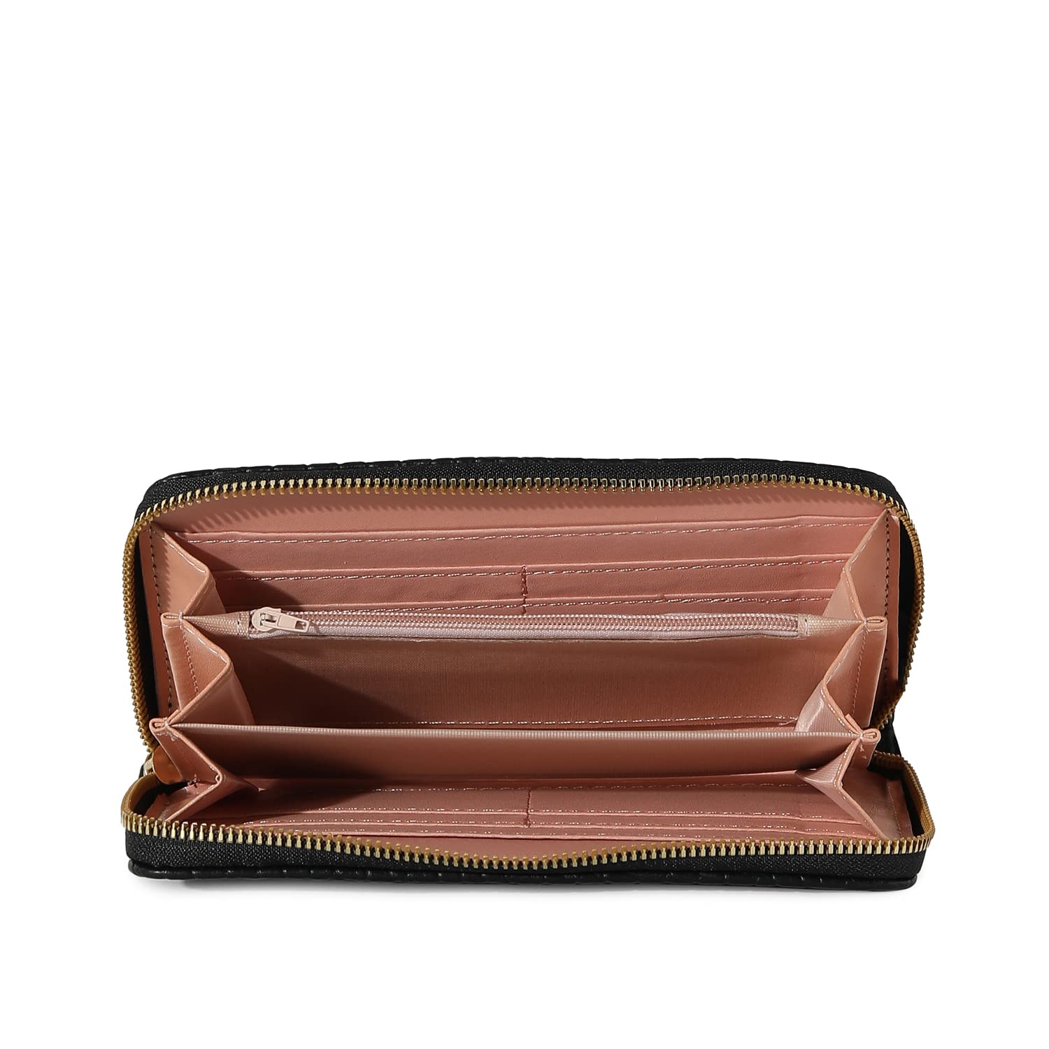 Haute Sauce Women Black Textured Vegan Leather Wallet for Casual Wear | Zip Closure | Slim and Easy to Fit in Hand & Bags | Latest Stylish Purse with Pocket & Multiple Card Holders for Ladies