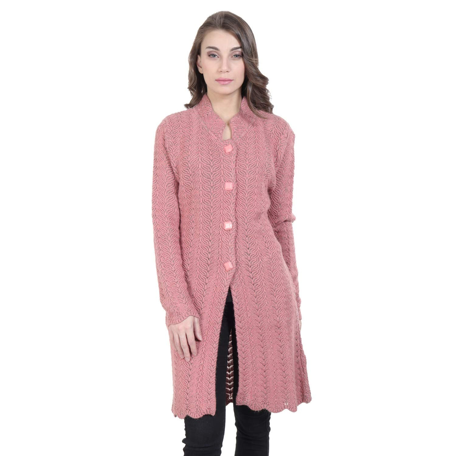 Look stylish wearing this Ladies cardigan from the house of hautemoda. Made from 100% Wool, this cardigan will keep you comfortable and warm all day long. Pair it with a pair of jeans and you are all set to go. Featuring a trendy patterns, this cardigan will fetch you innumerable compliments. This trendy Self cardigan is exclusively available for you this winters collection.
