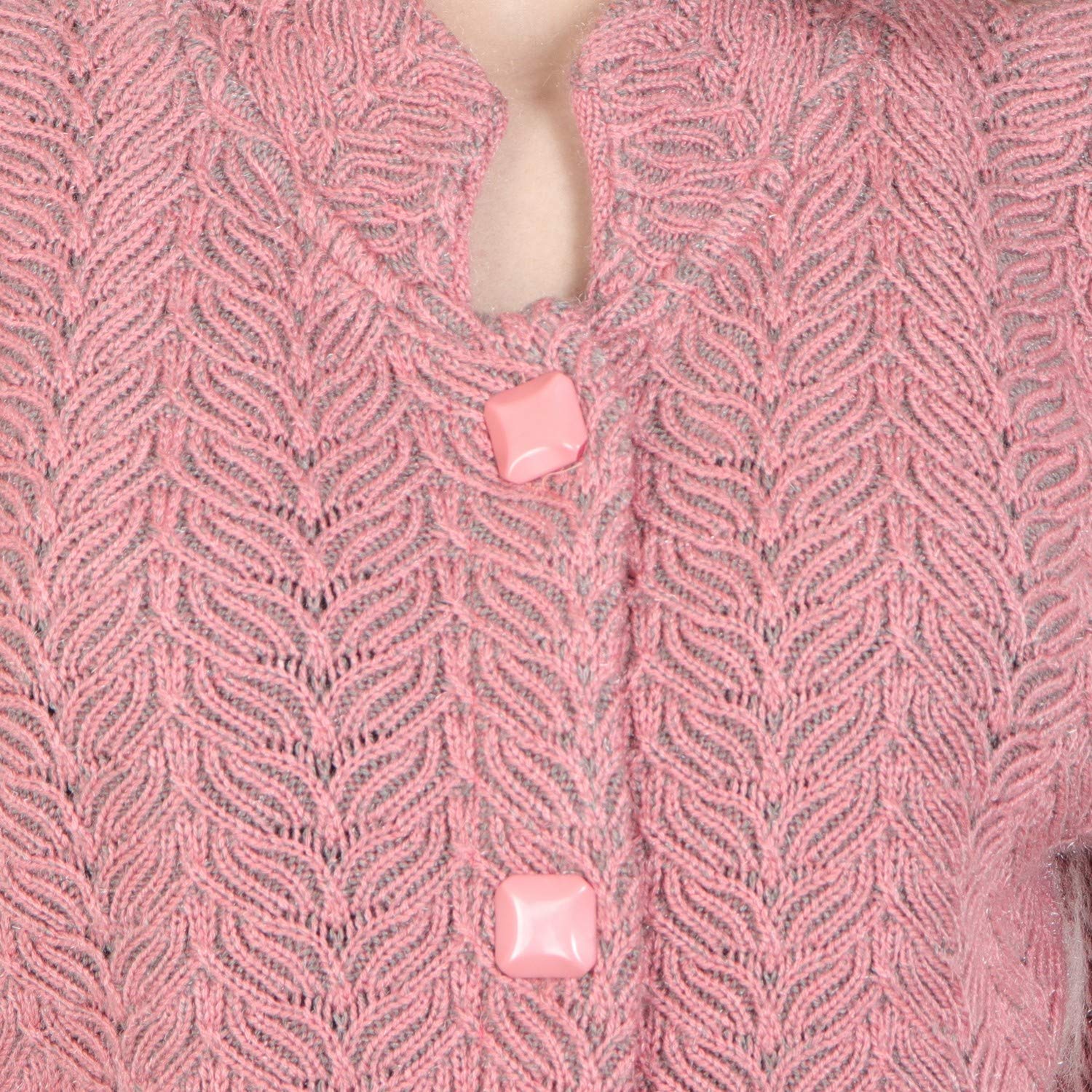 HAUTEMODA Womens Woollen Round Neck Embroidered Cardigan With Pockets (Pink_XXL)