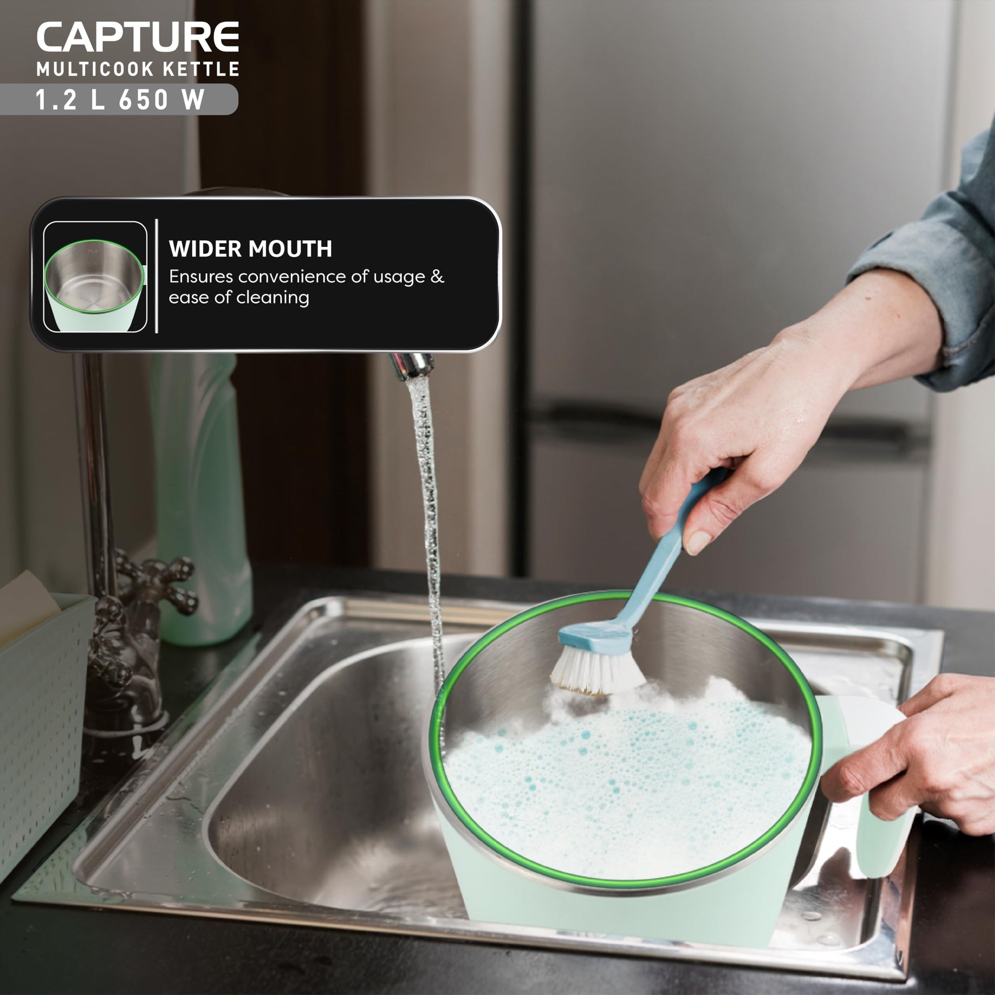 Havells Capture 1.2 L Multi-Cook Electric Kettle with Steamer | 650W |304 Stainless Steel Inner Body|Cooks Noodles, Rice, Milk | Cool-Touch Body | 2-Year Warranty (Green)