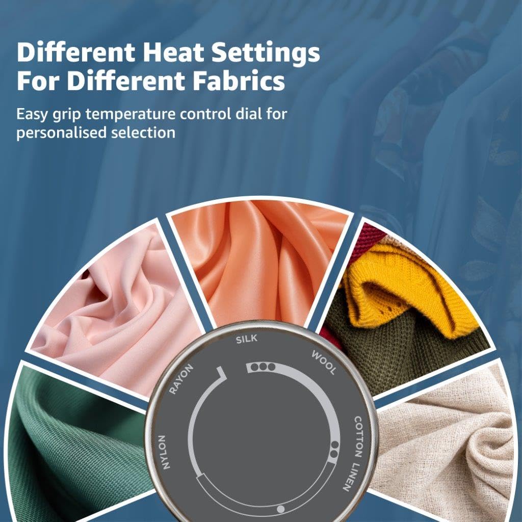 - Temperature Control Dial for All Fabrics- Adjustable knob allows precise control for different fabric types like cotton, silk, wool, and more—ensures safe and effective ironing.