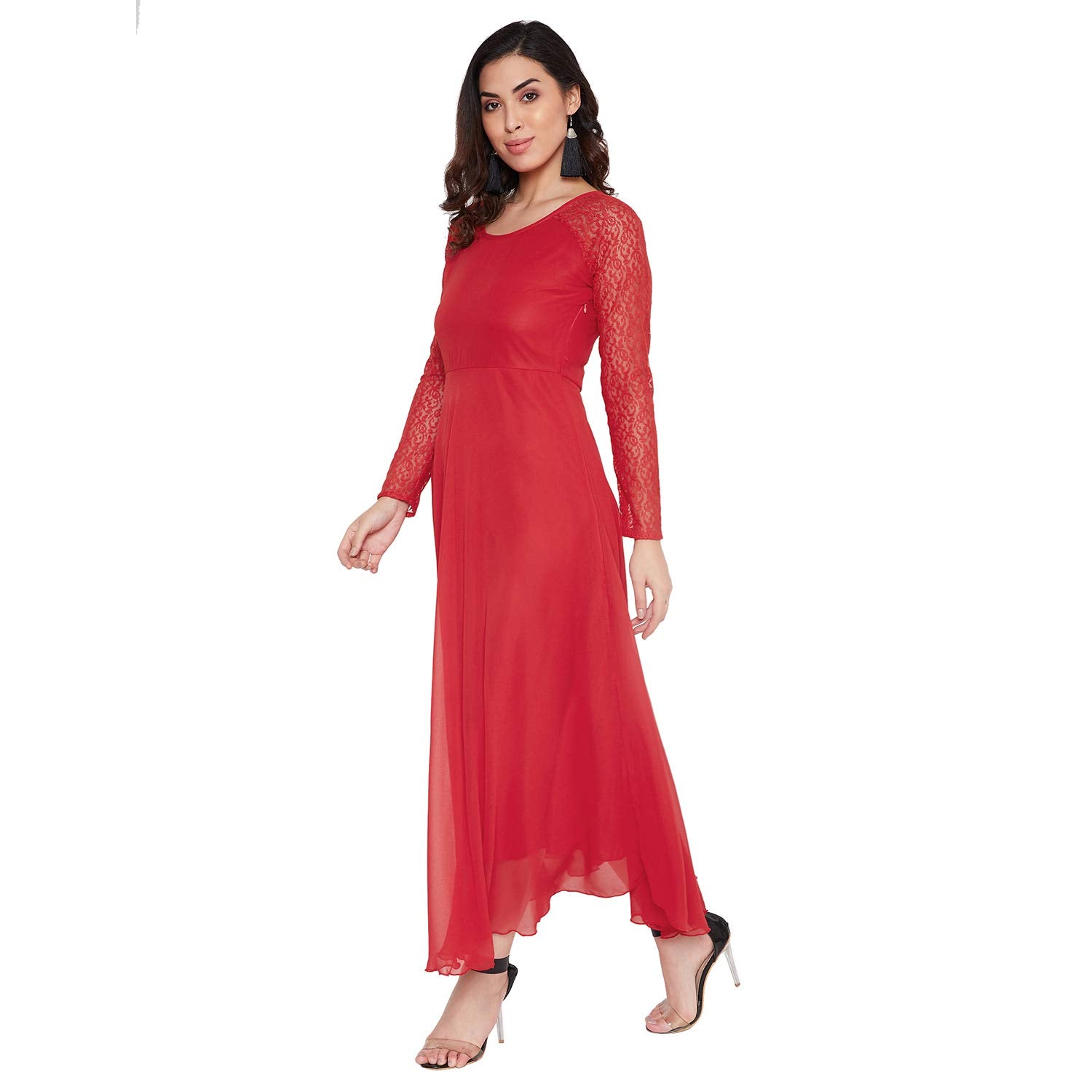 HELLO DESIGN Women Red Solid Fit & Flare Maxi Dress