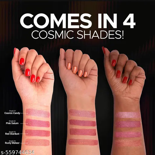 Glittery FormulaGet ready for a truly cosmic, shiny finish with the Starlight Metallic Lipstick that looks like stardust on your lips! It brings a captivating metallic glitter lipstick effect, ensuring your smile shines brilliantly.