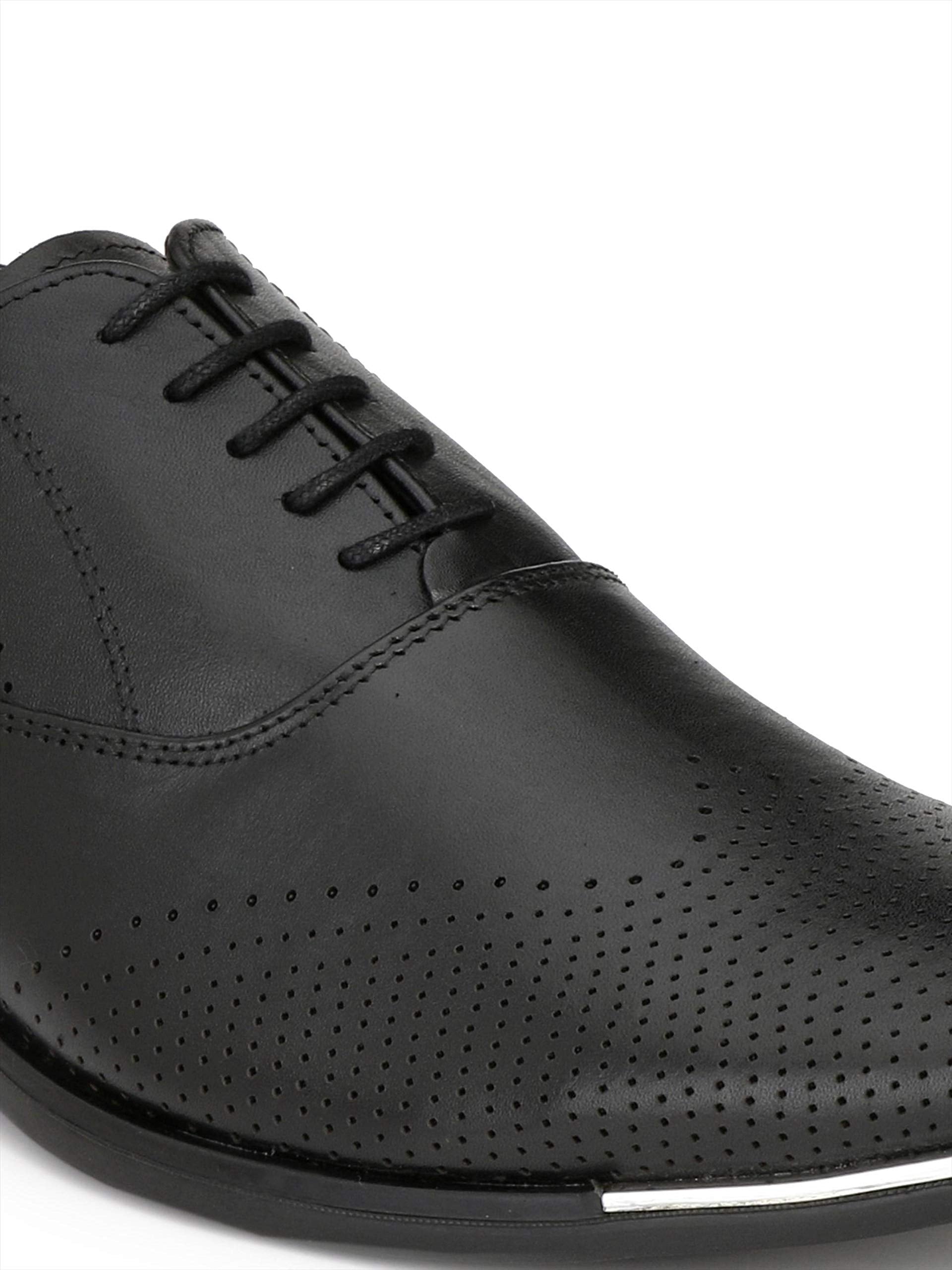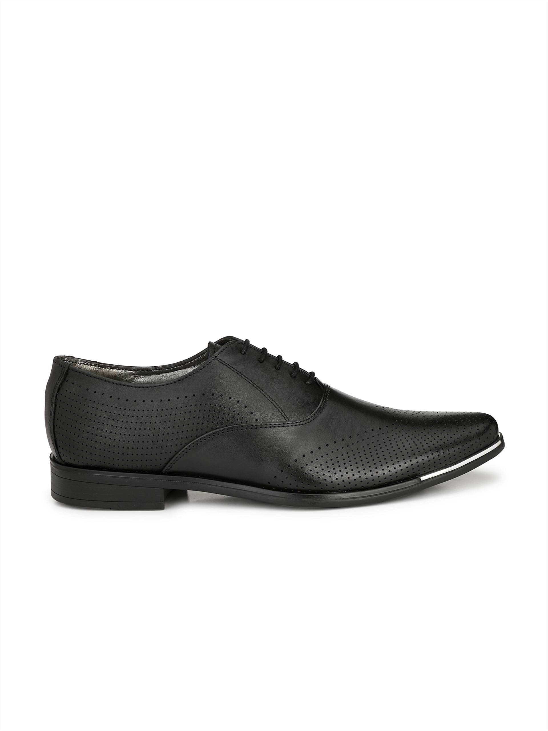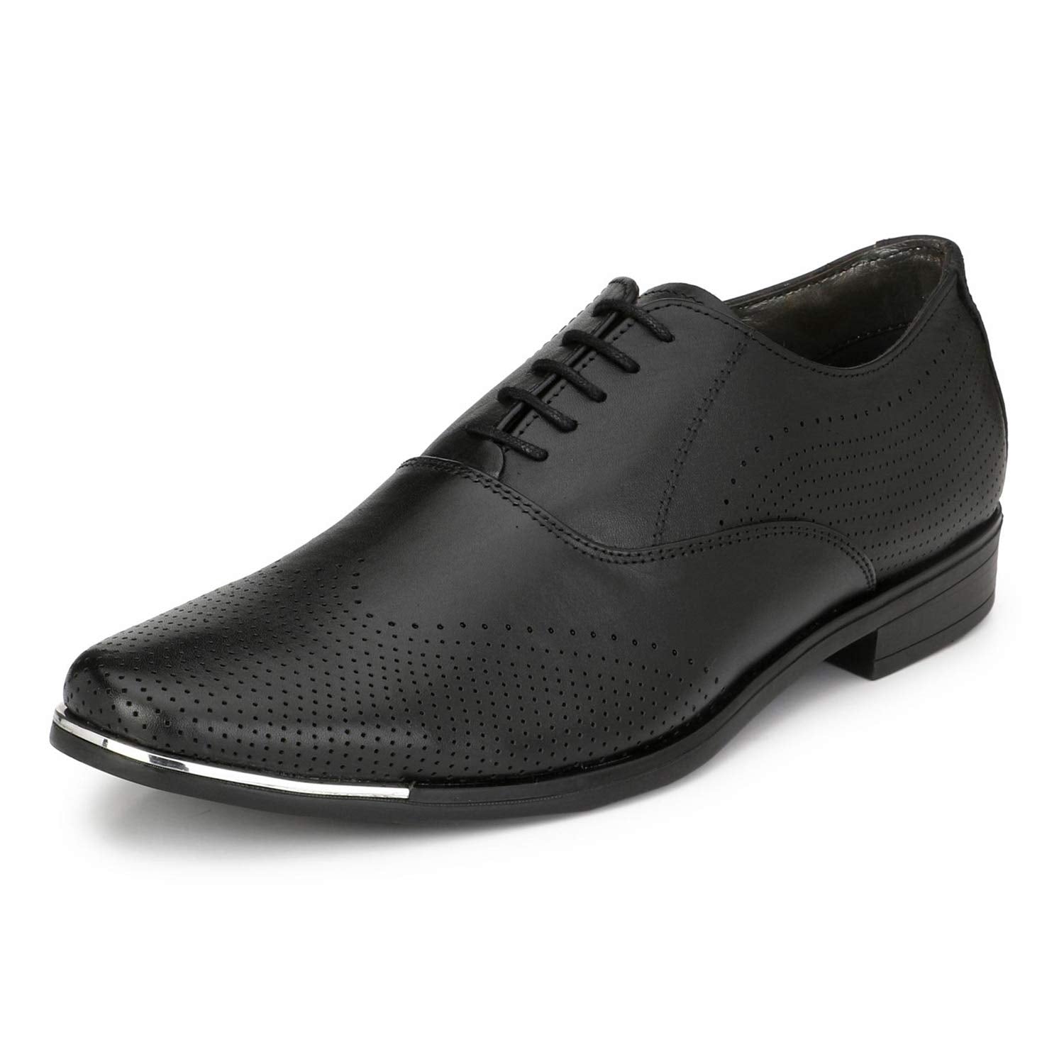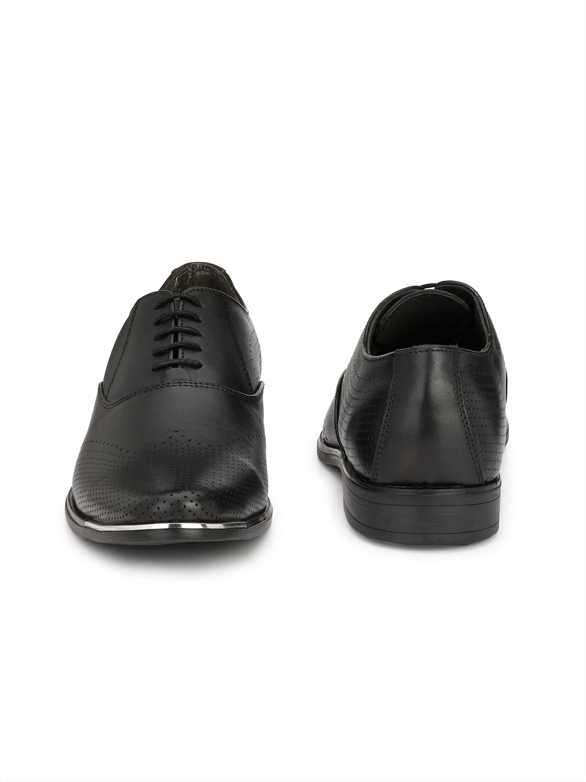 HITZ Men's Black Leather Lace-Up Semi-Formal Shoes