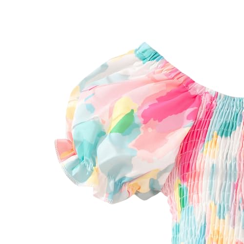 Hopscotch Girls Abstract Polyester Puff Sleeves Fit Flare Plain Casual Dresses In Red Color For Ages 6-7 Years (MTQ-4658877)