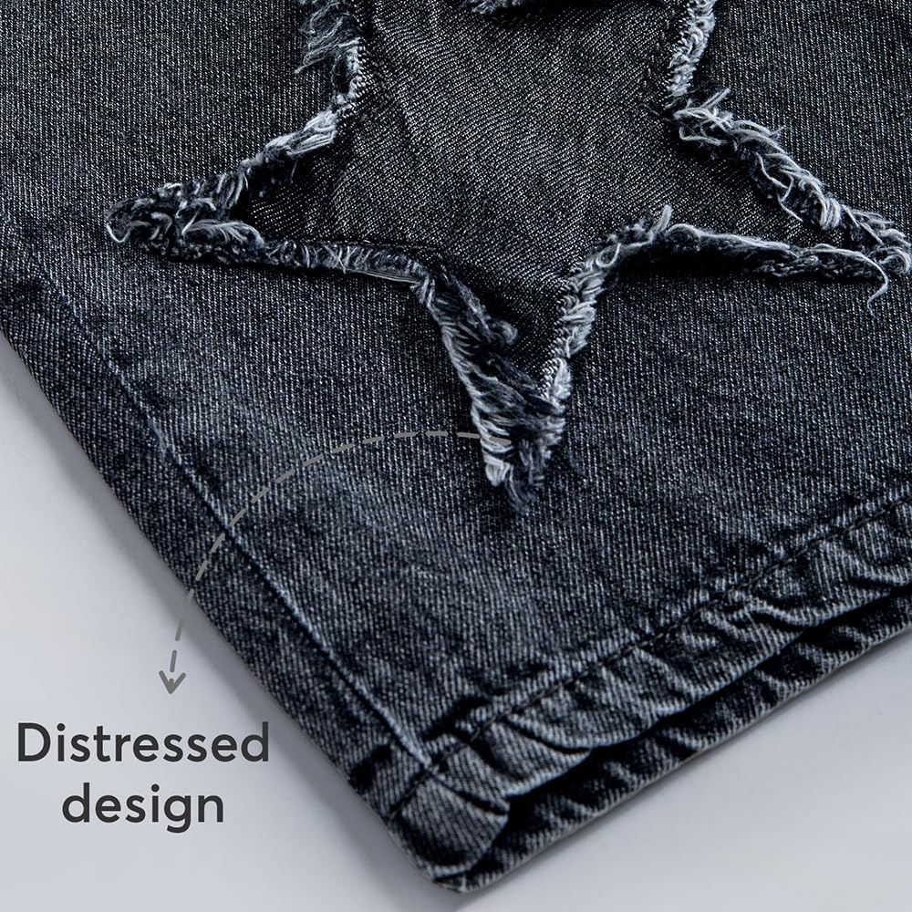 - Edgy wide-leg jeans featuring star-shaped cutouts and distressed patches for cool street-style attitude.
