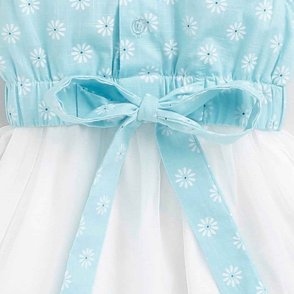Hopscotch Girls Cotton Floral Print Casual Knee Length Dress In Blue Color For Ages 2-3 Years (Oth-1751569)