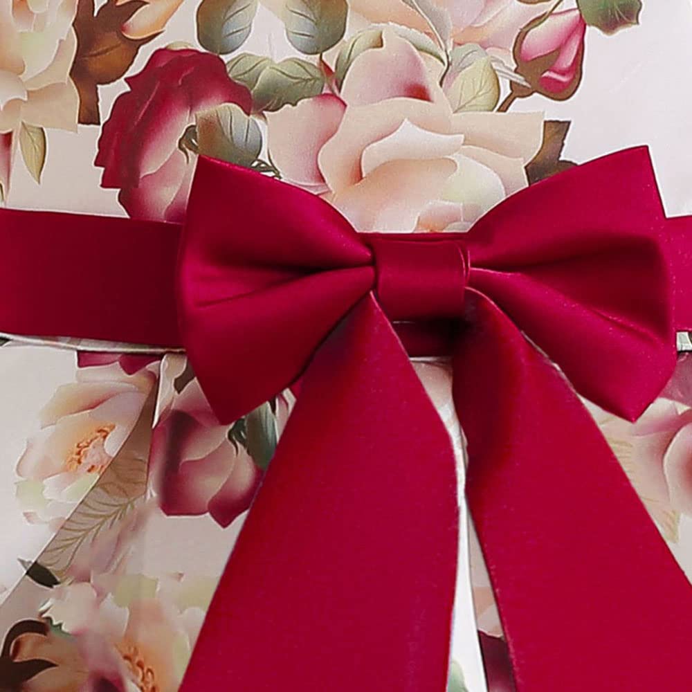 Hopscotch Girls Floral Print Party Dress In Red Color for Ages 7-8 Years