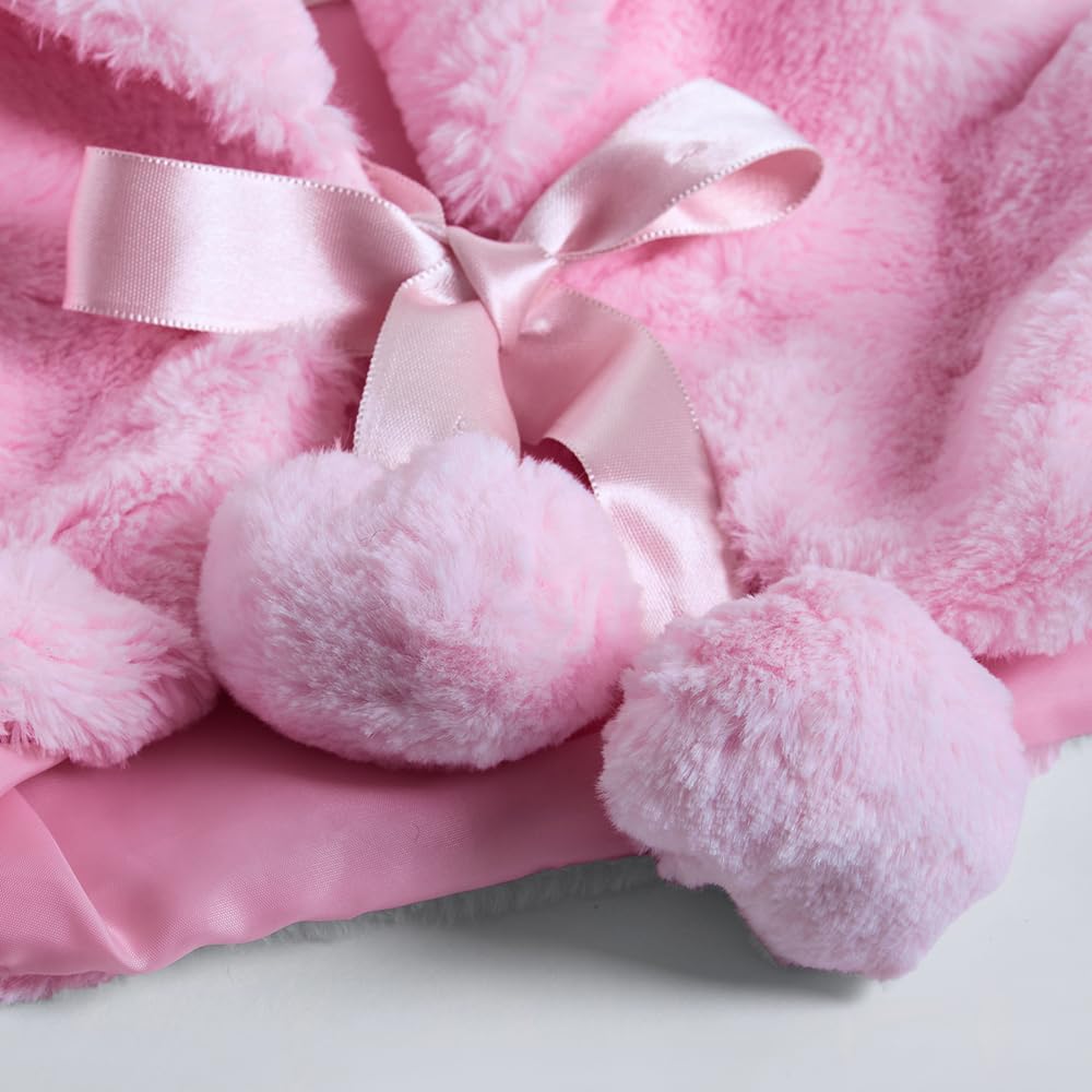 Hopscotch Girls Full Sleeves Pink Fur Pom Pom Embellished Jacket