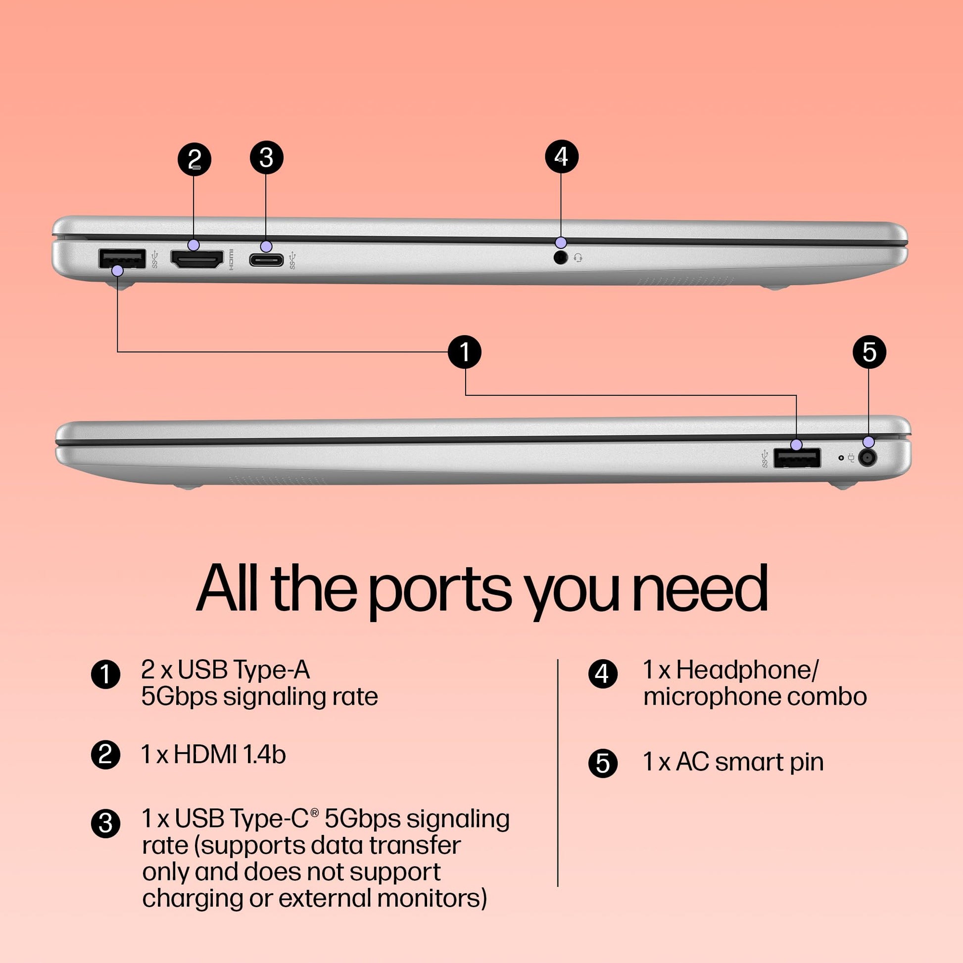 - Ports & Connectivity :1 USB Type-C 5Gbps signaling rate (supports data transfer only and does not support charging or external monitors); 2 USB Type-A 5Gbps signaling rate; 1 AC smart pin; 1 HDMI 1.4b; 1 headphone/microphone combo| Connectivity: Realtek Wi-Fi 6 (2x2) and Bluetooth 5.3 wireless card (supporting gigabit data rate)