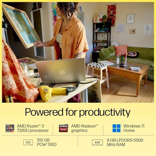 HP 15 AMD Ryzen 3 7320U (8GB LPDDDR5 Ram/512GB NVMe M.2 SSD/Anti Glare, Micro Edge/15.6" (39.6 Cm) FHD/Backlit Keyboard/Win11 Home+MS Office'21/ AMD Radeon Graphics, HD Camera/1.59Kg/Silver) Fc0026AU