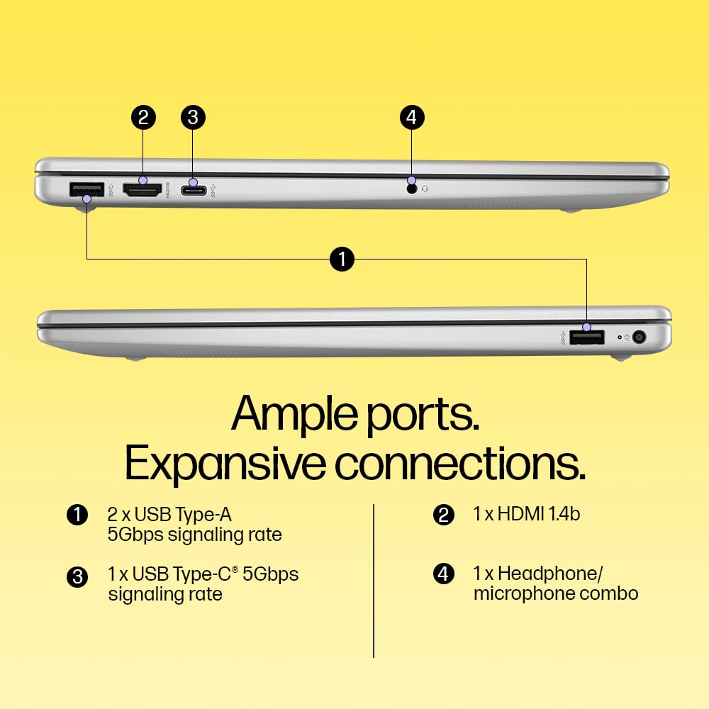 - Ports: 1 USB Type-C 5Gbps signaling rate (supports data transfer only and does not support charging or external monitors); 2 USB Type-A 5Gbps signaling rate; 1 AC smart pin; 1 HDMI 1.4b; 1 headphone/microphone combo