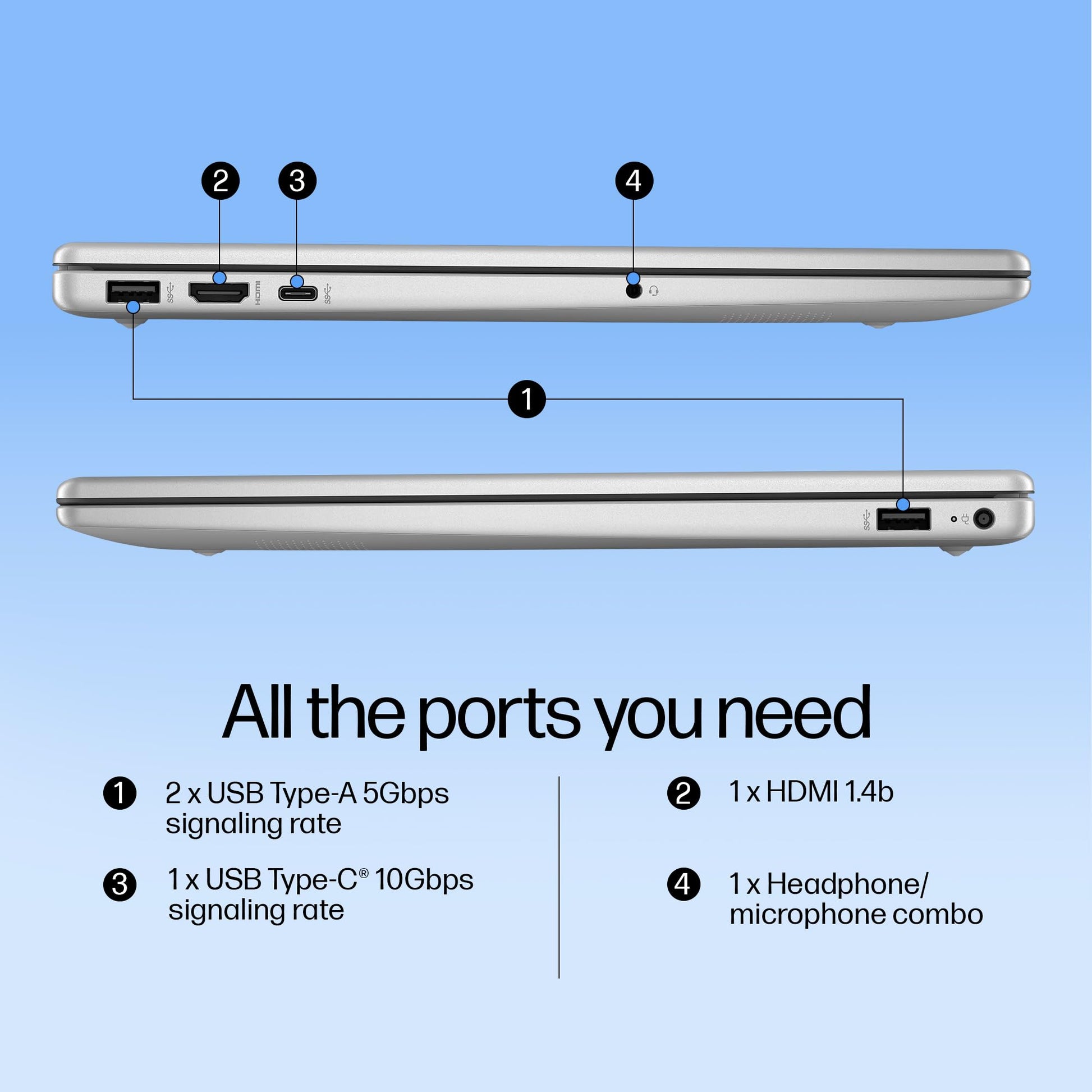- Ports & Connectivity :2 USB Type-A 5Gbps signaling rate; 1 AC smart pin; 1 HDMI 1.4b; 1 headphone/microphone combo; 1 USB Type-C 10Gbps signaling rate (USB Power Delivery, DisplayPort 1.2, HP Sleep and Charge)| Connectivity: Realtek Wi-Fi 6 (2x2) and Bluetooth 5.3 wireless card (supporting gigabit data rate)