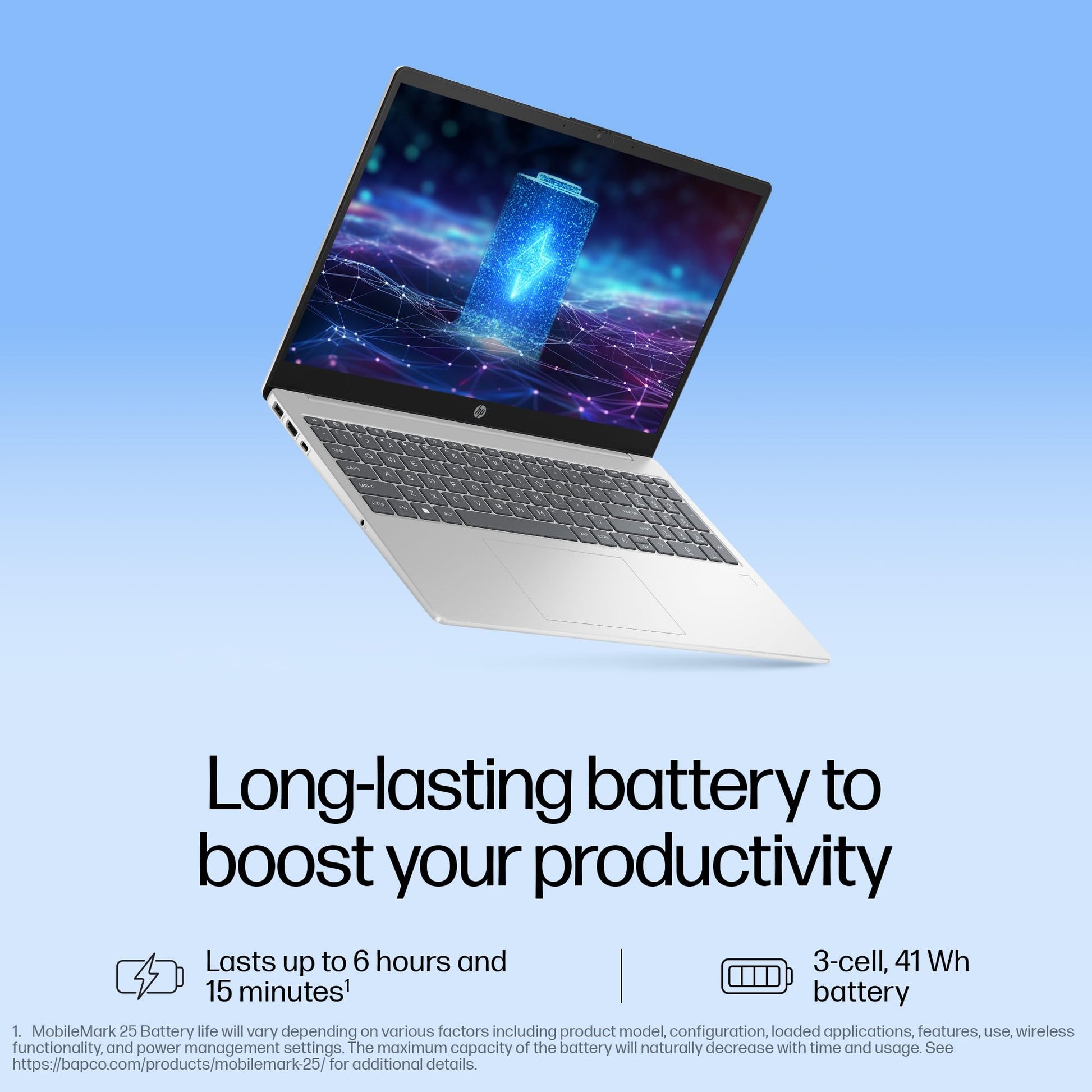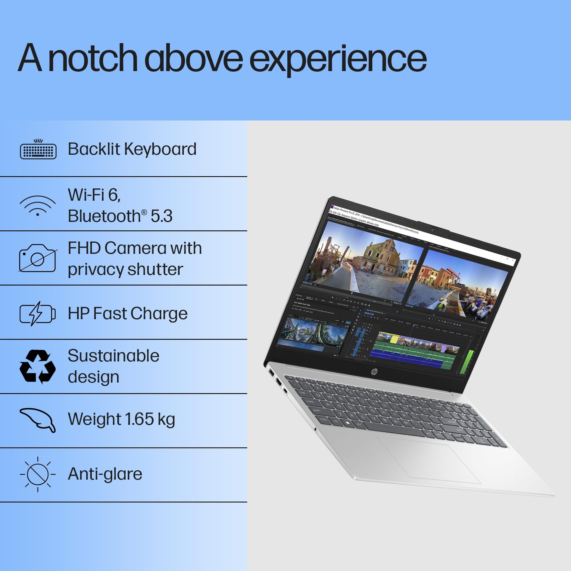- Other Features: Camera: HP True Vision 1080p FHD camera with temporal noise reduction and Integrated dual array digital microphones| Keyboard:Full-size, backlit, soft grey keyboard with numeric keypad| Audio: Dual speakers|Battery type: 3-cell, 41 Wh Li-ion polymer; Supports battery fast charge: approximately 50% in 45 minutes [