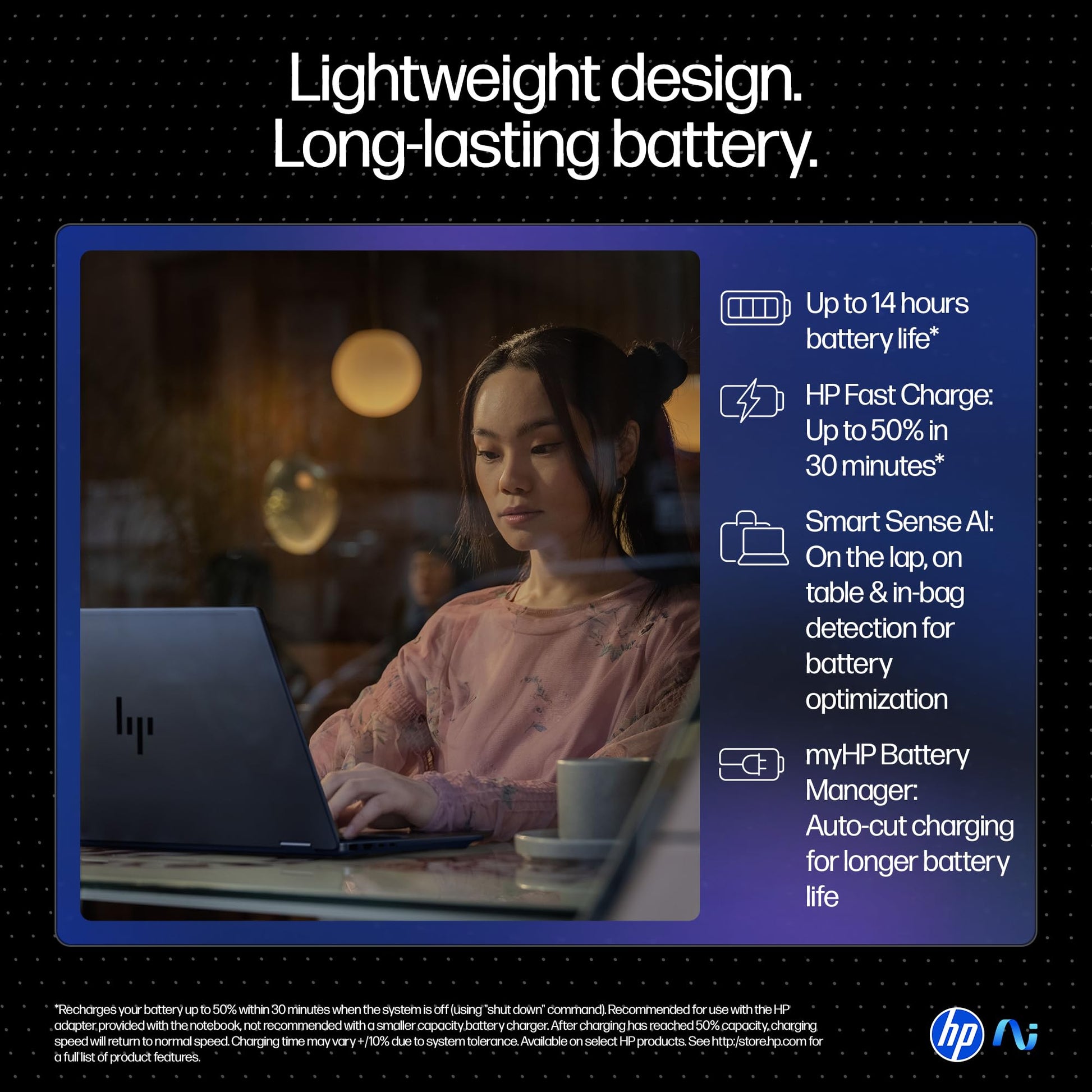 - Display & Graphics: 35.6 cm (14") diagonal, 3K (2880 x 1800), OLED, multitouch-enabled, 48- 120 Hz, 0.2 ms response time, UWVA, edge-to-edge glass, micro-edge, Corning Gorilla Glass 3, Low Blue Light, SDR 400 nits, HDR 500 nits, 100% DCI-P3| Graphics: Intel Arc 140V GPU (8GB)