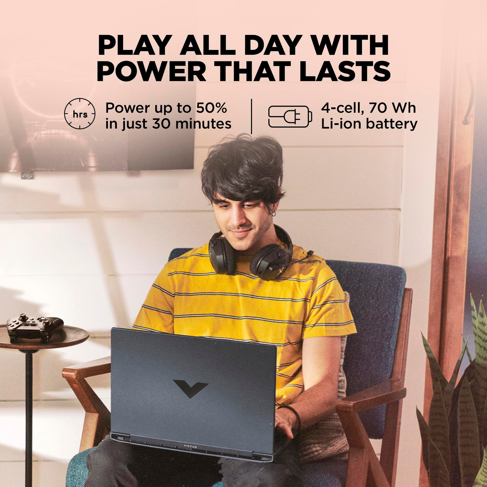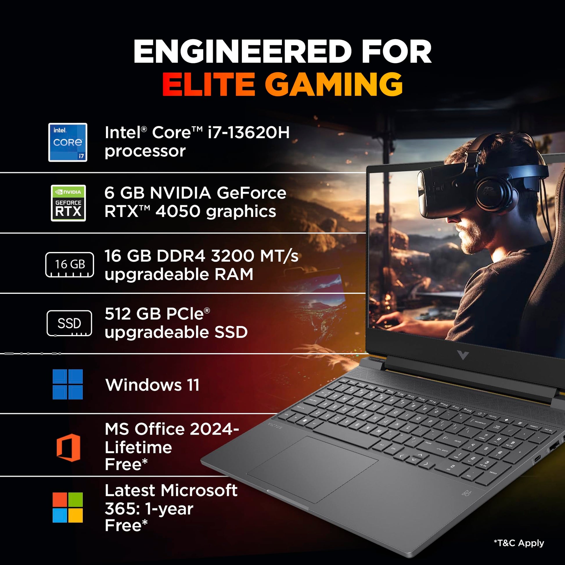 HP Smartchoice Victus, 13th Gen i7-13620H, 6GB RTX 4050, 16GB DDR4(Upgradeable) 512GB SSD, 144Hz, 300nits, FHD, 15.6''/39.6cm, Win11, M365* Office24, Mica Silver, 2.3kg, fa2100TX/2103tx, Gaming Laptop