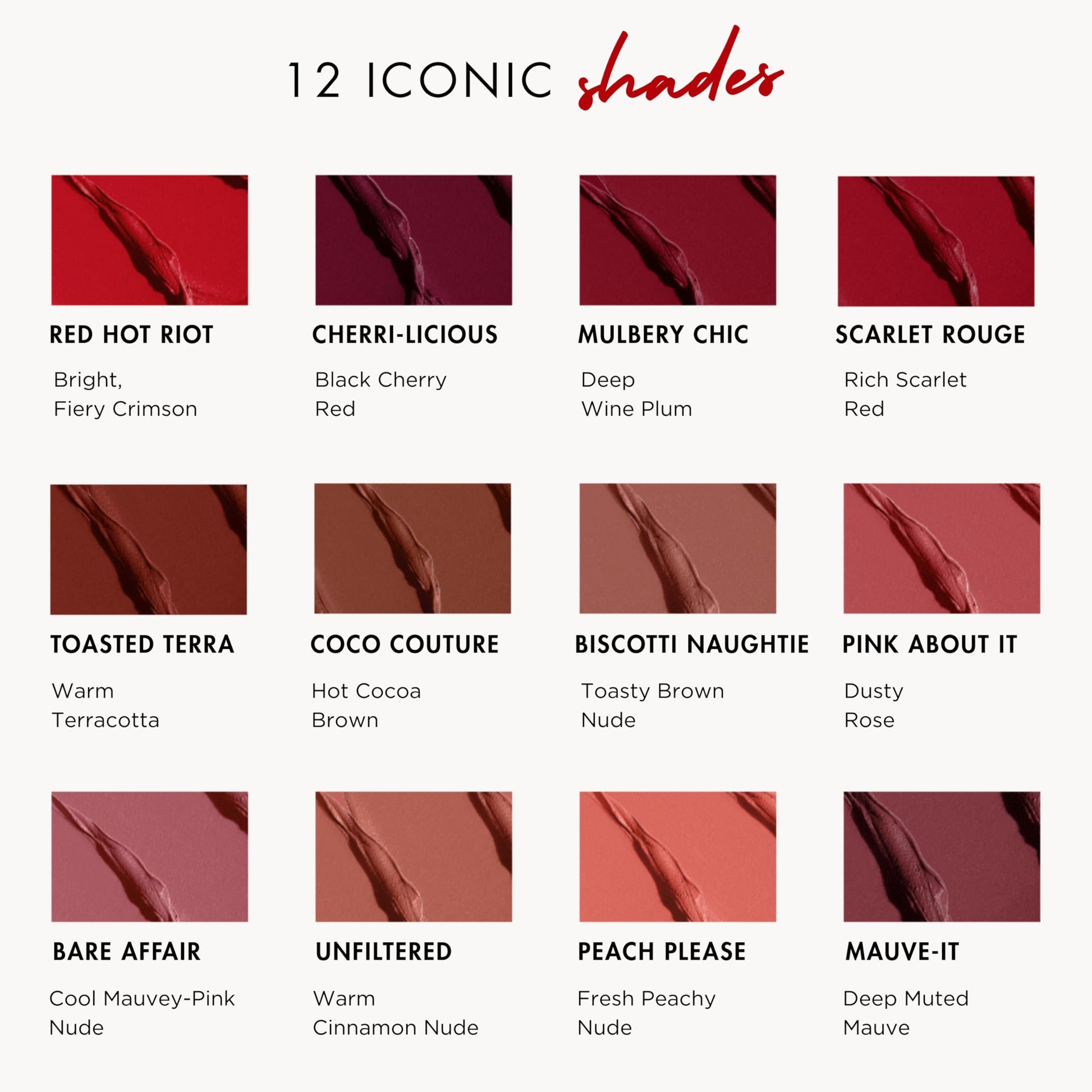 HYUE Velvet Kiss Matte Bullet Lipstick | Feather Light & Powder Matte Finish | Long-Wear Intense Color | With Jojoba, Almond & Gooseberry Extracts | Smudge-Proof, Travel-Friendly, Precision Tip | 12 Bold Shades