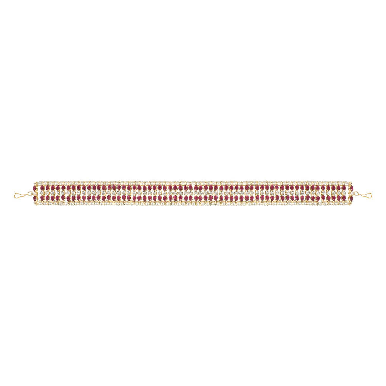 Take your ethnic accessories up a notch with this magnificent head chain by I Jewels. Team it with a saree and traditional jewellery to make heads turn at the next wedding or festive occasion