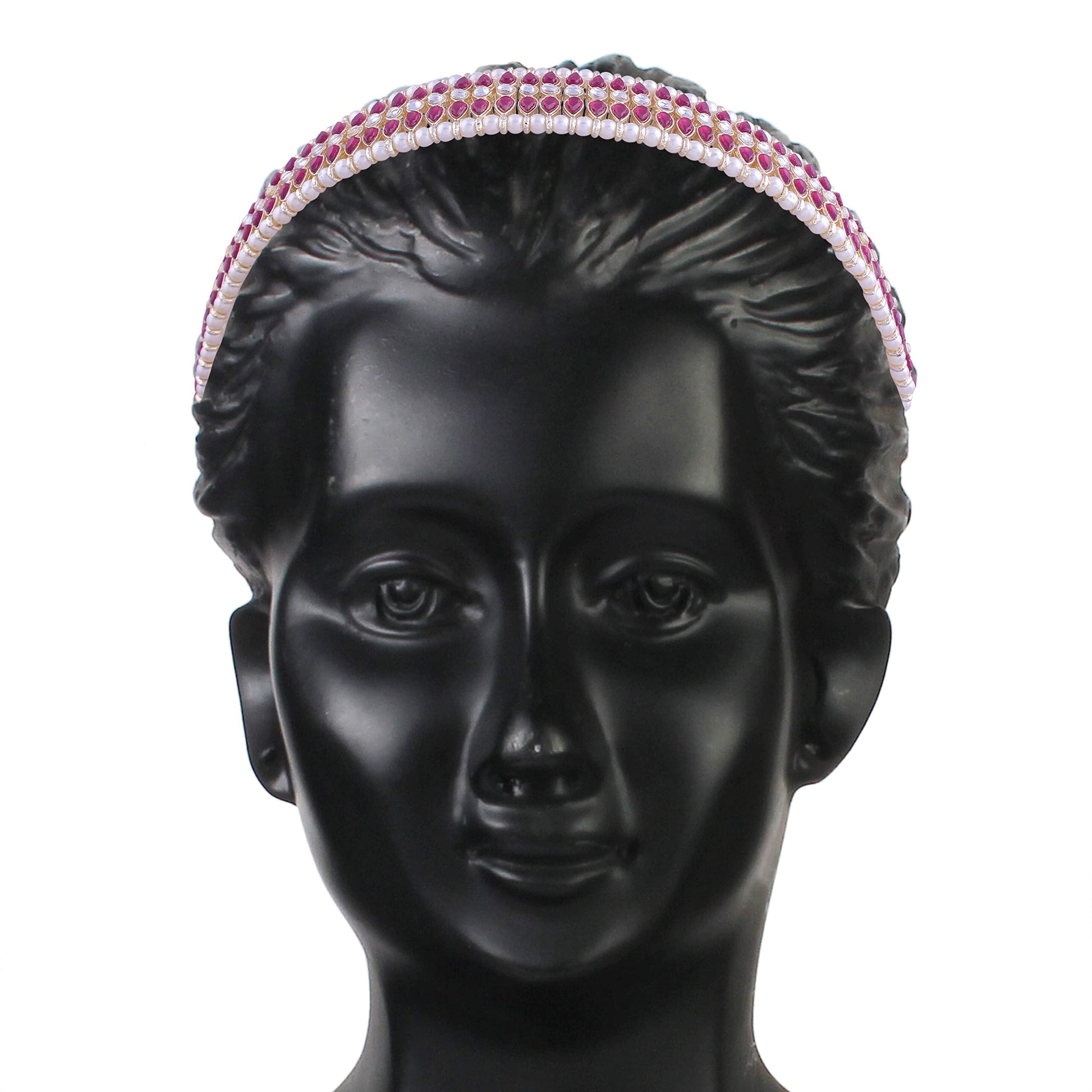 I Jewels Gold Plated Metal Traditional Floral Kundan Pearl Studded Rajasthani Sheeshphool/Mathapatti for Women (Pink)