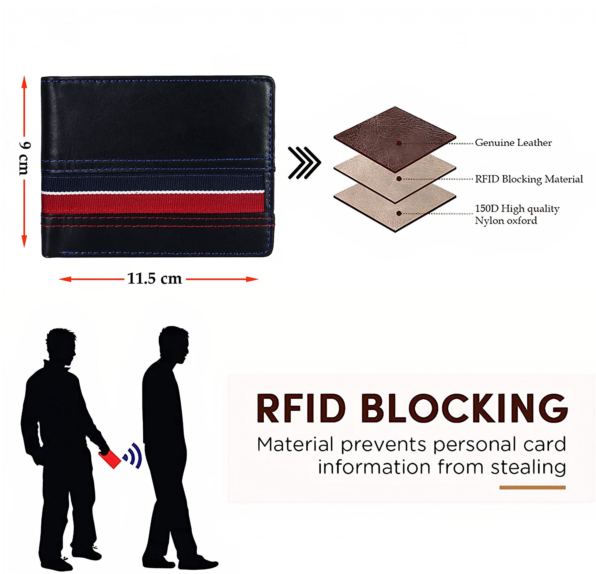 - RFID Blocking Technology:To prevent the possibility of RFID skimming . The wallet is equipped with a unique RFID Blocking Technology which helps to protect any valuable information stored on RFID chips.