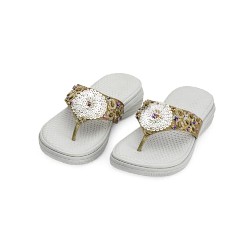 - Platform Sole Flipflop that are Durable and Lightweight ; They are Built to Last as They Have a Lightweight Anti Skid EVA Sole ; Ideal for Daily Use and Can Also be Worn to Occasions Because of the Bling that the Sequined Design adds