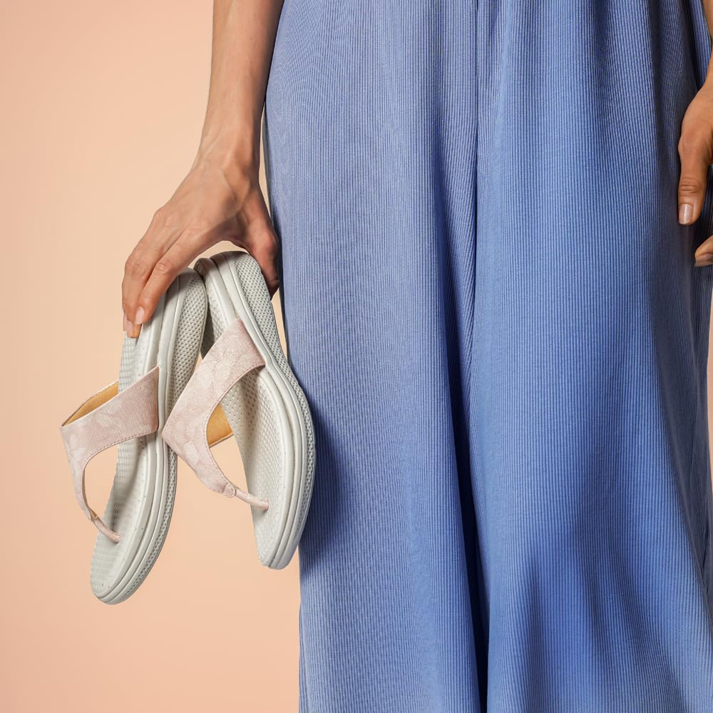 - Thong Sandal with Fashion Forward Design Due to its Stylish Denim Upper ; These Fancy Slippers Add a Contemporary Touch to Any Look ; These Latest Women Footwear Keep You in Line with the Ongoing Fashion Trends