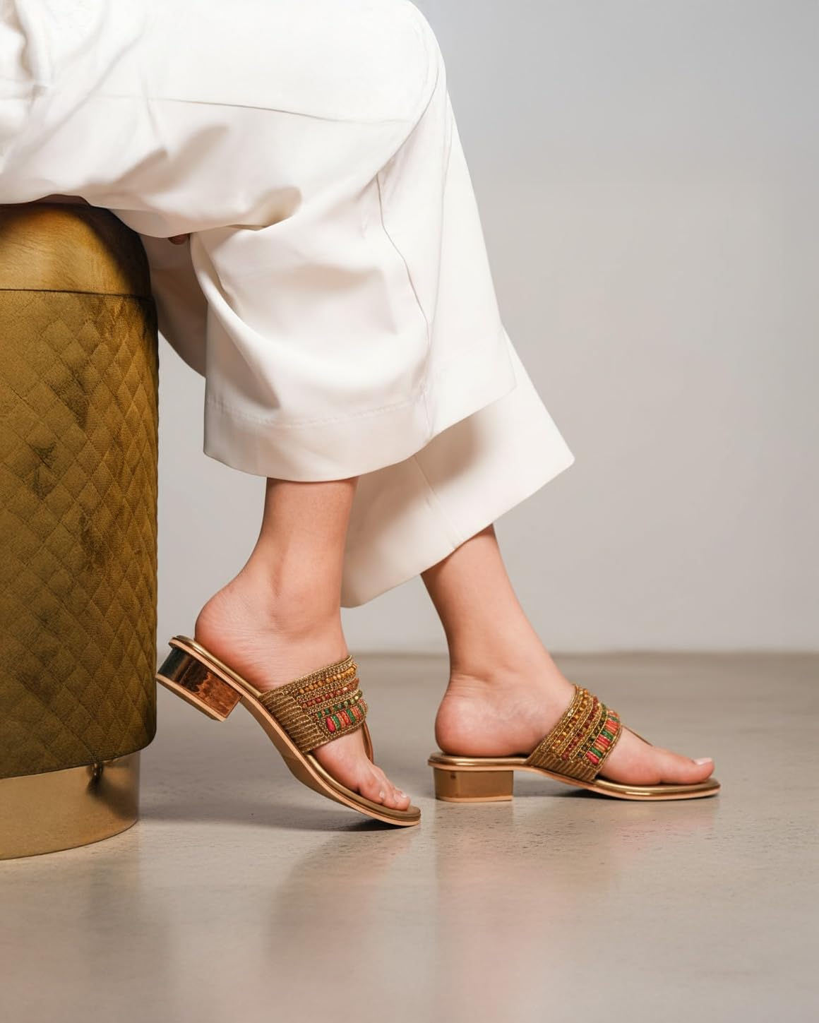 - Saree Essential - Soft gold thong slippers that complement traditional sarees with ease.