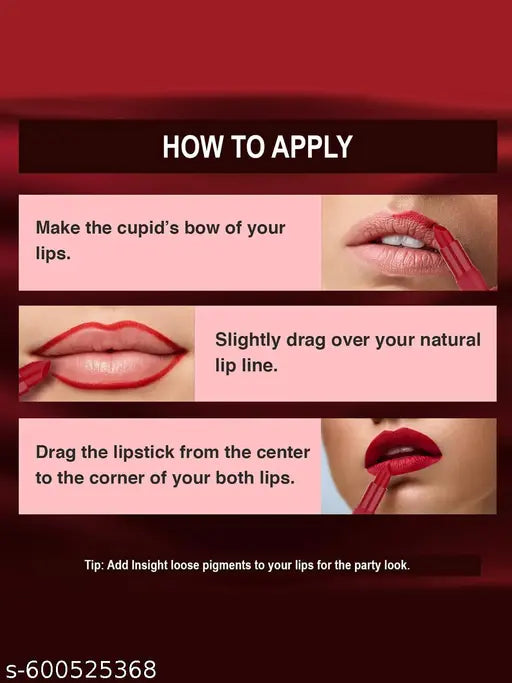 INSIGHT introduces a range of super creamy matte lipstick's that glide on seamlessly to deliver a soft matte finish. Each shade from this range features a highly pigmented formula and delivers a high colour pay off in just one application. Super long wearing, this lip colour does not fade and stays put all day long.