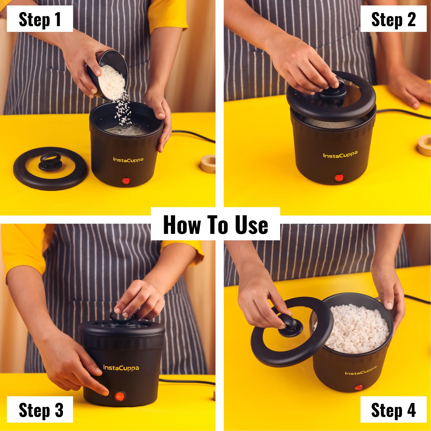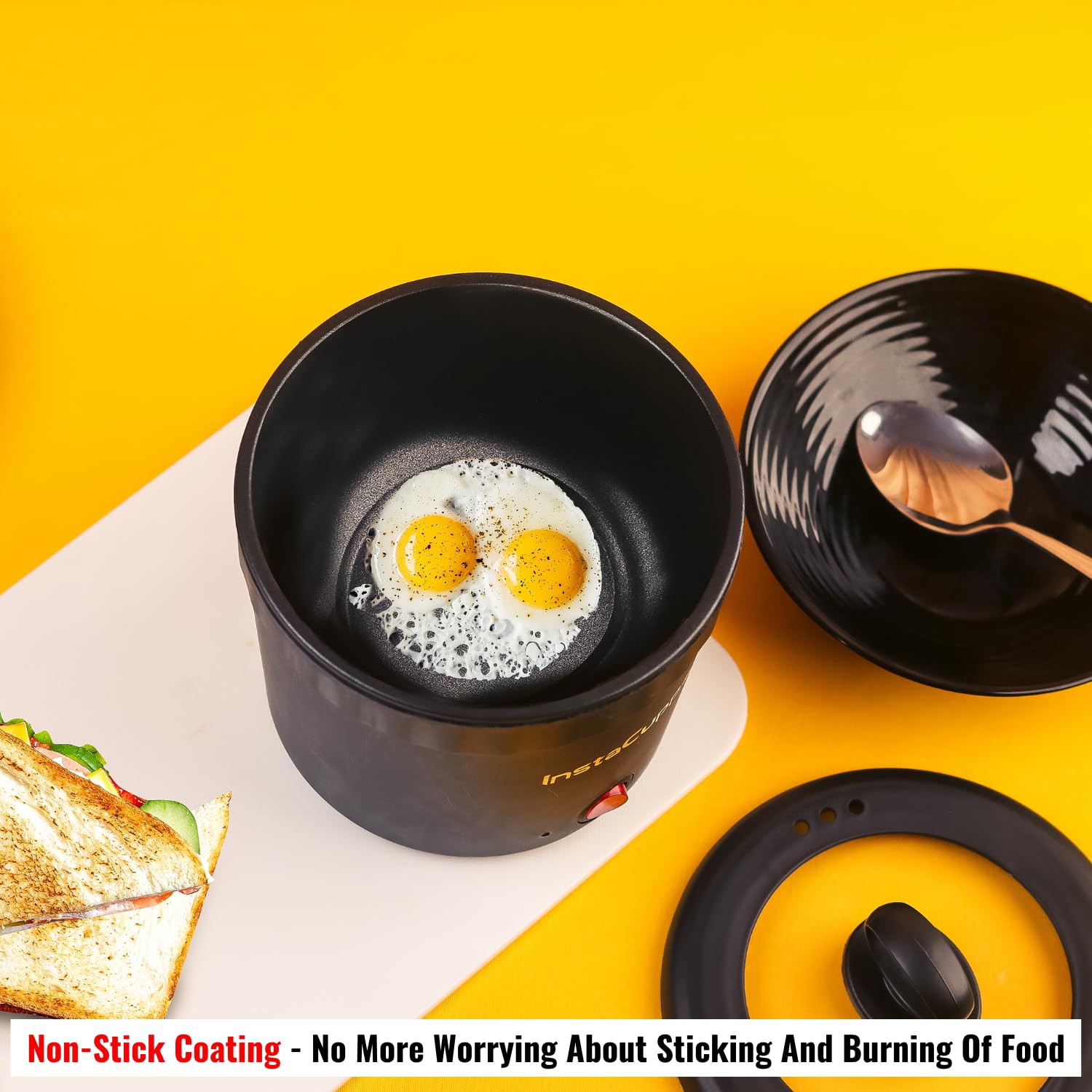 InstaCuppa Portable Multi Cook Electric Kettle with Non-Stick Inner Pot, Dry Boil Protection for Safety, Compact & Light Weight, Ideal for Boiling Milk, Tea, Coffee & Eggs, 1 Liter, 450 Watts, Black