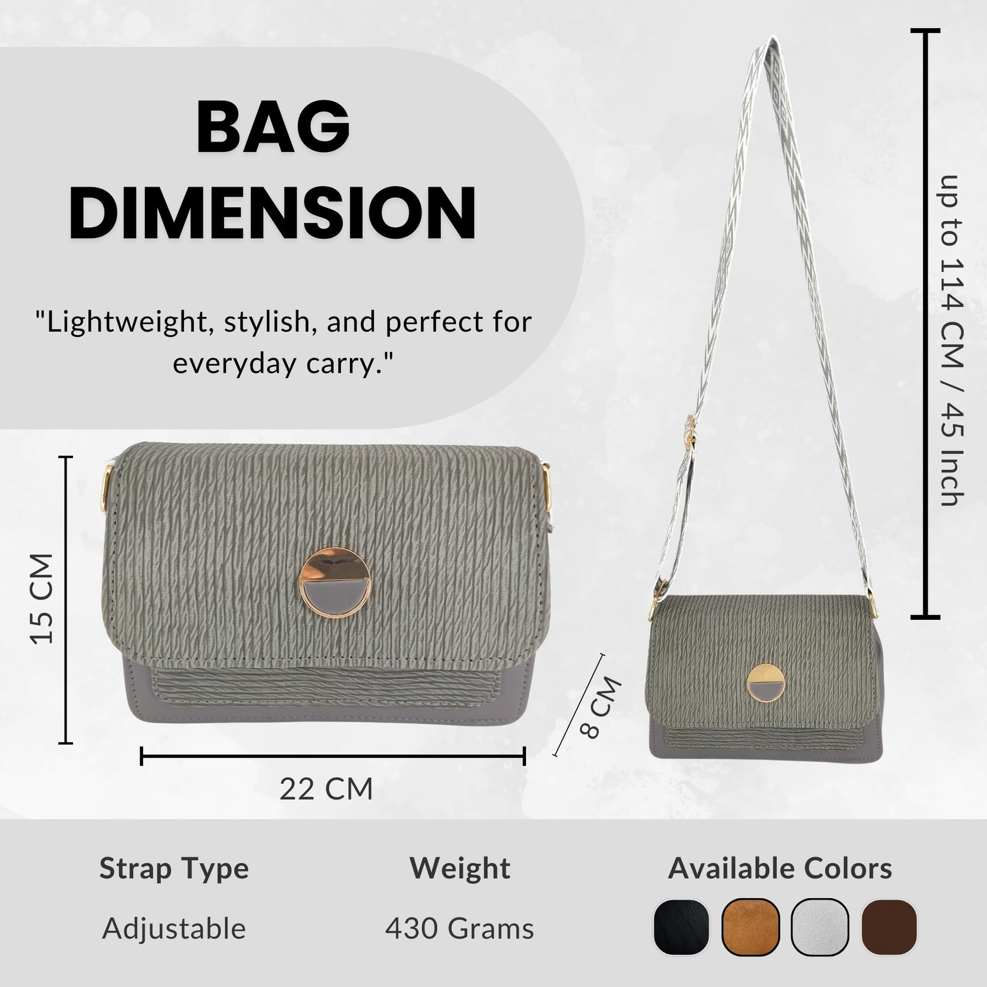 This stylish women's crossbody sling bag is the perfect blend of fashion and functionality. With its sleek black colour and textured design, it adds a touch of sophistication to any outfit. The adjustable strap ensures a comfortable fit, while the lightweight construction at 430 grams makes it easy to carry all day. Measuring 22 cm in length, 15 cm in height, and 8 cm in width, this bag offers ample space for your essentials. Whether you're running errands or heading to the office, this crossbody sling bag is a versatile and chic accessory. Crafted with attention to detail, it promises durability and style in equal measure. This Sling or Crossbody bag is available in Black, Brown, Grey, Coffee Colors.
