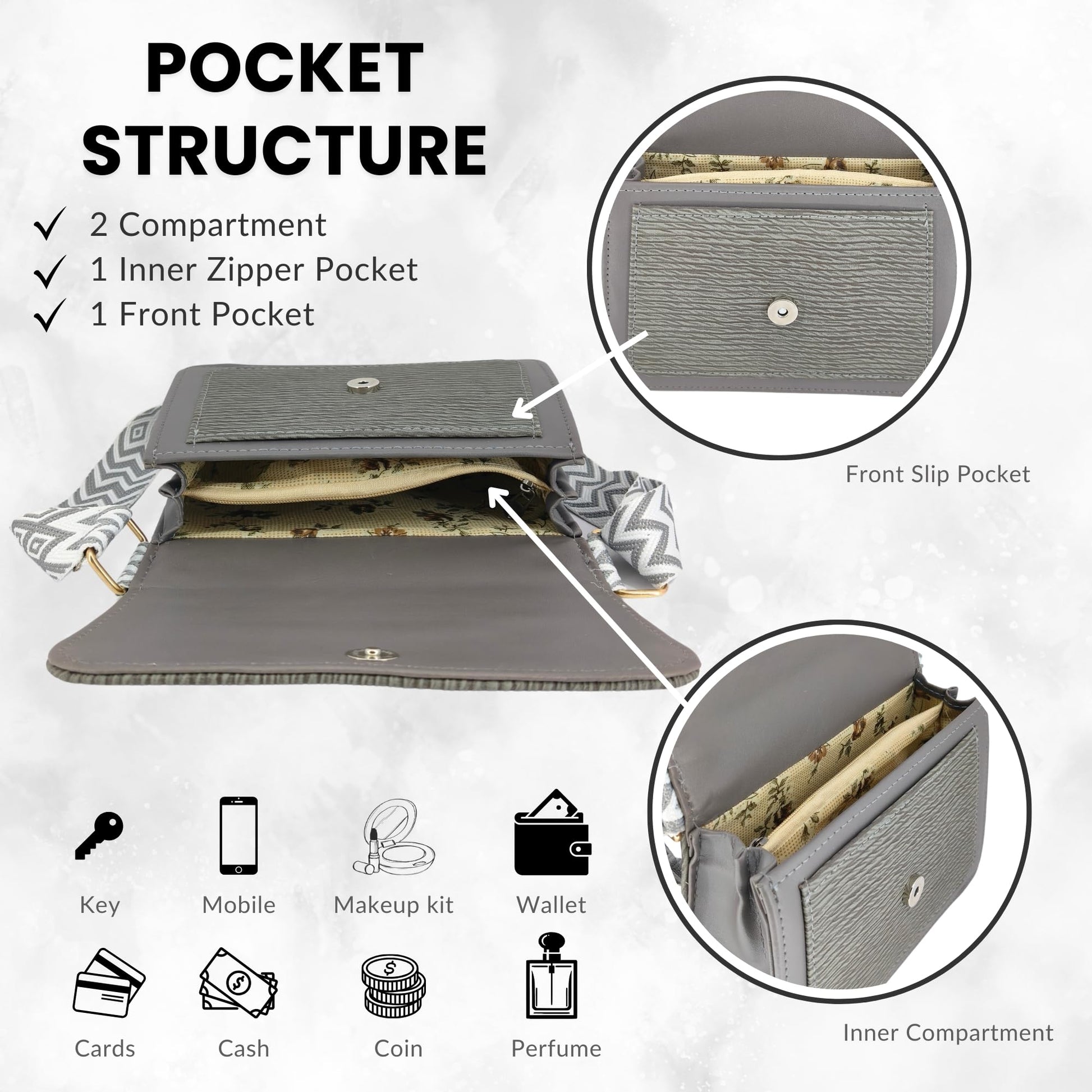 - Stylish Accents: The Crossbody Bag boasts a chevron pattern strap and a metallic ring detail, adding a touch of sophistication to its design.