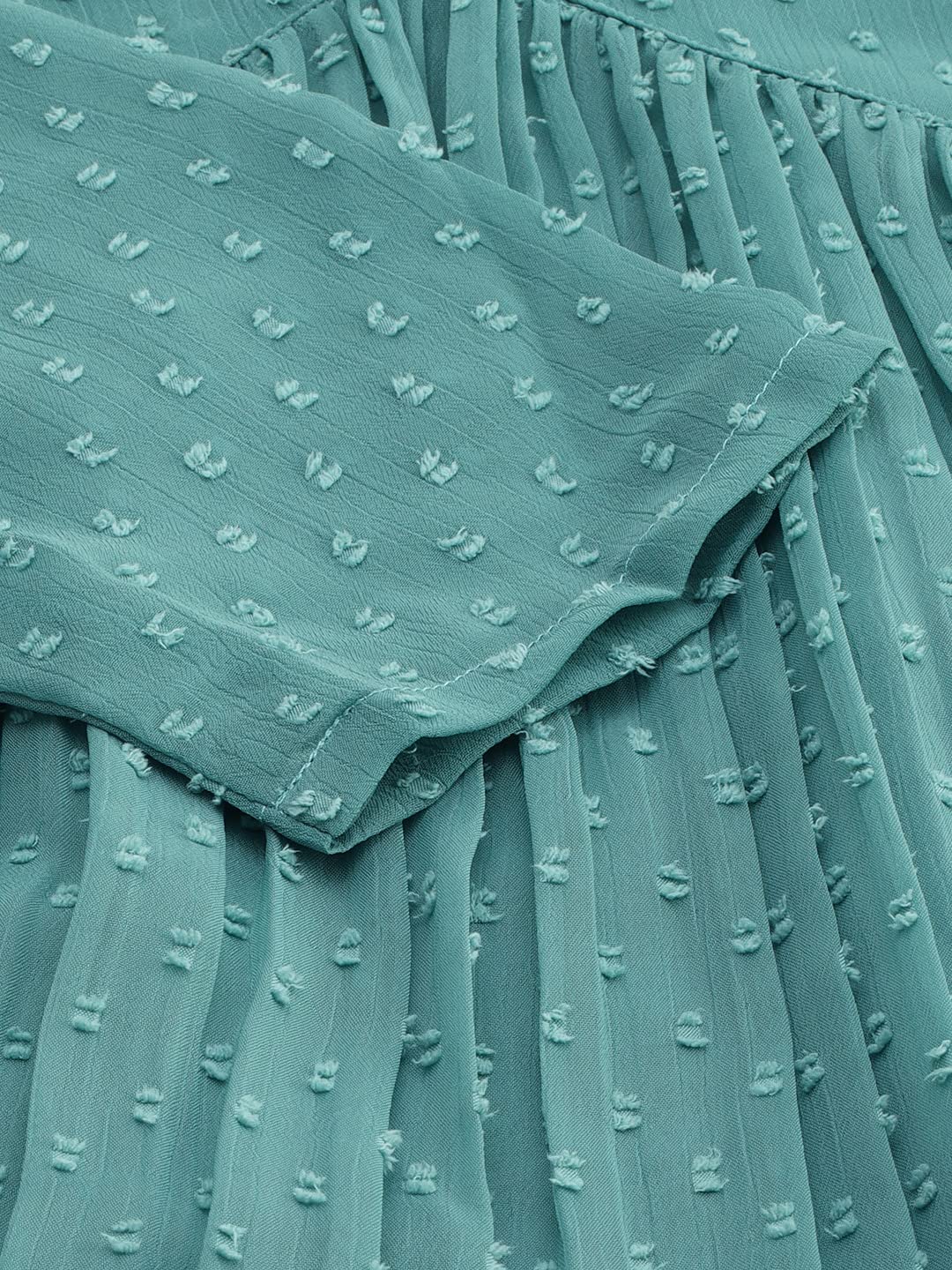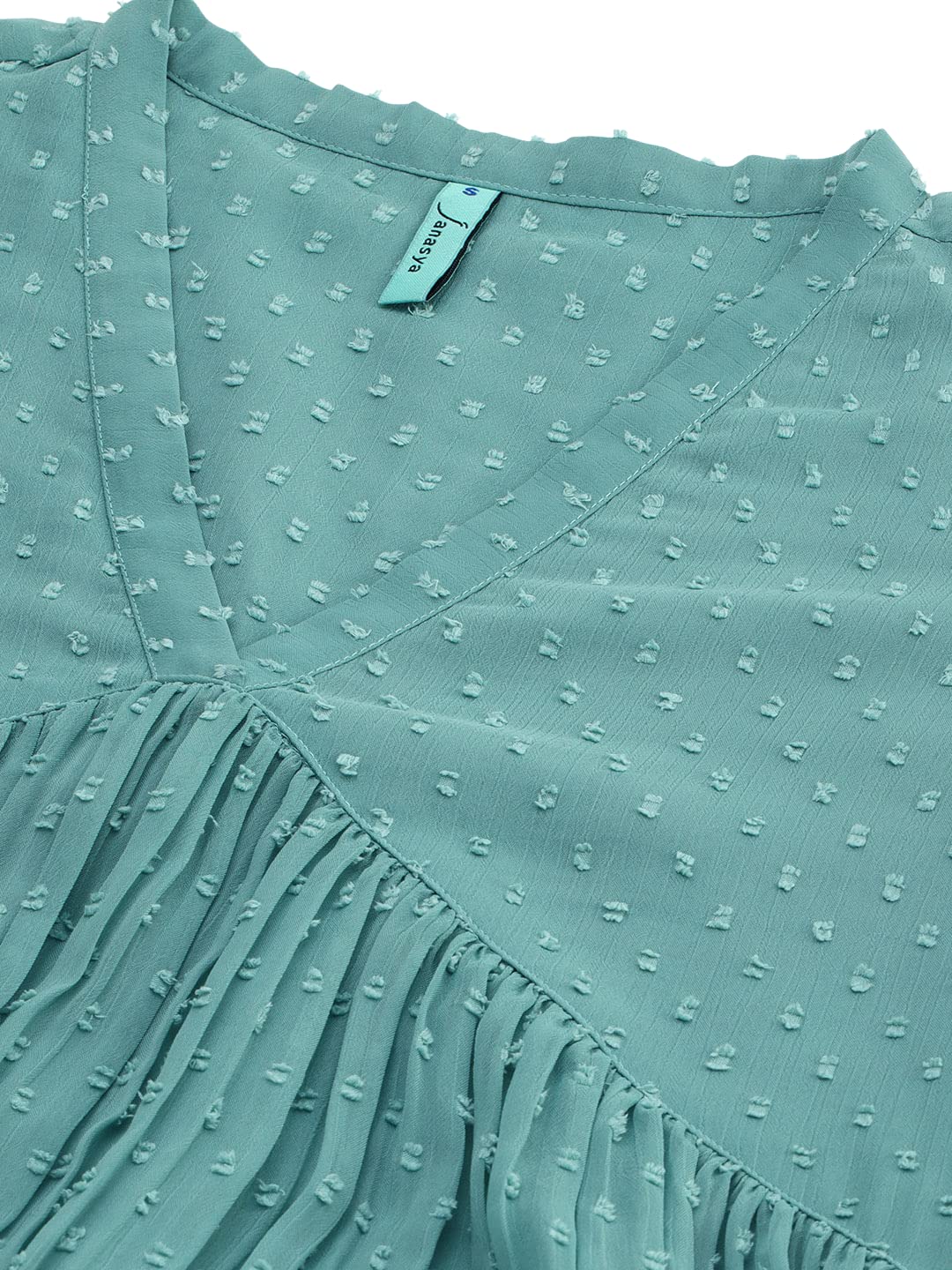 Janasya Women's Green Poly Chiffon Self Design Flared Western Dress(JNE3797-KR-XS)