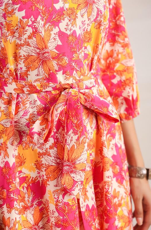 - Dress Length: 44(IN) | Colour: Multicolour | Pattern: Floral | Occasion: Casual | Style: A-Line | Sleeve Type: Three-Quarter Sleeves (Puff Sleeves )