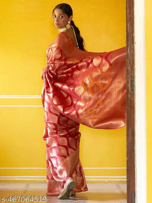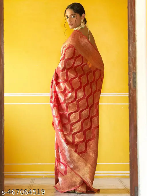 NameJanasya Women's Red Organza Woven Ethnic Motifs Saree with Unstitched Blouse Piece