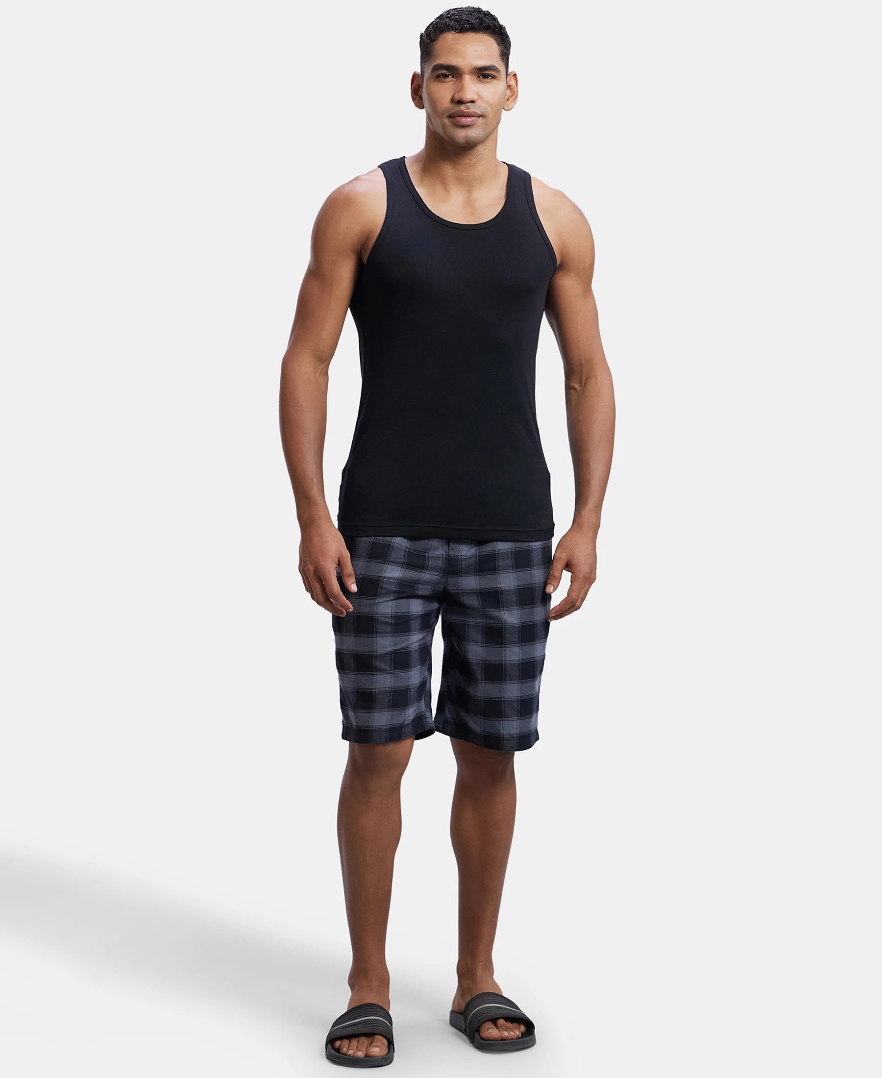 Jockey Men's Regular Fit Shorts (US88-01_Charcoal & Blue_L)
