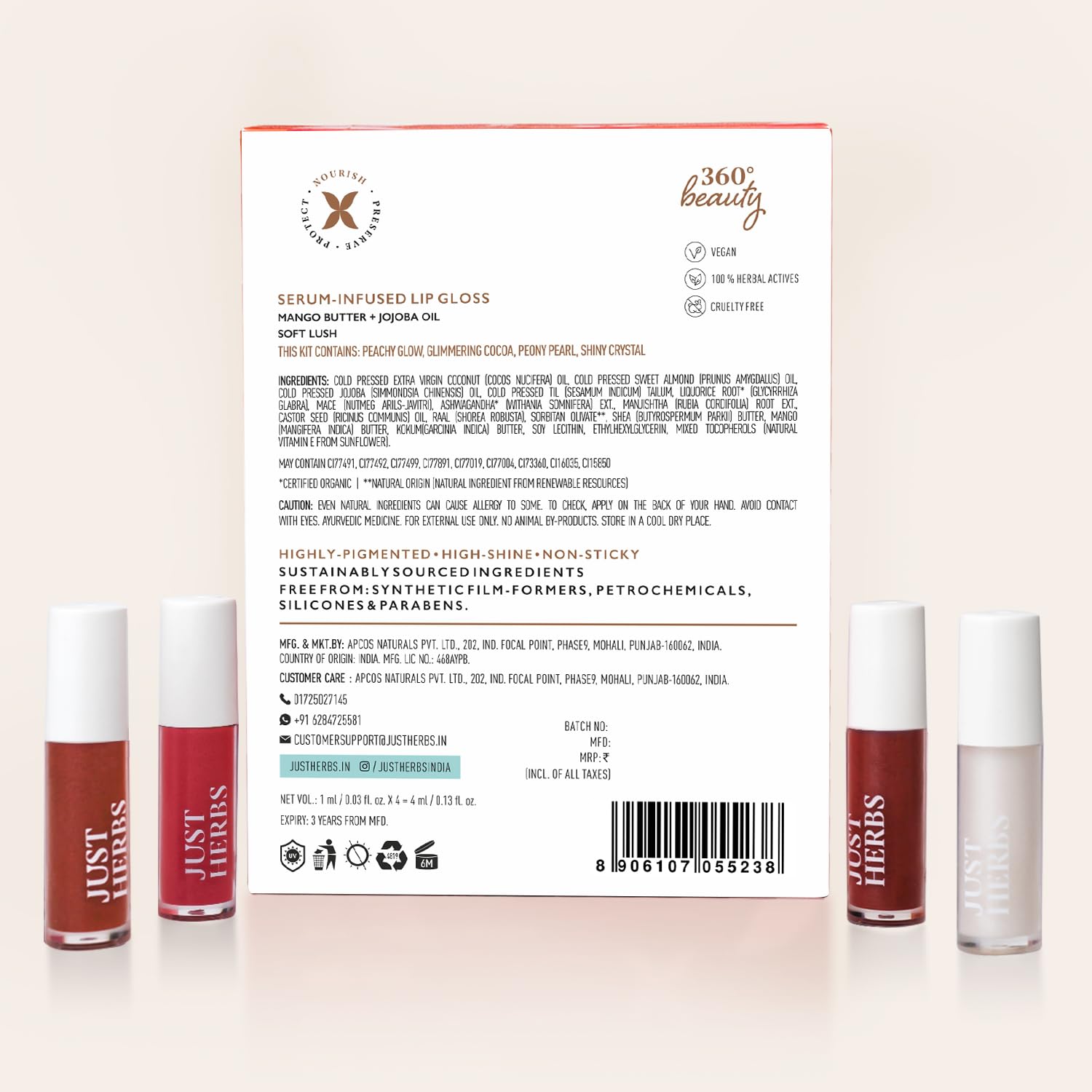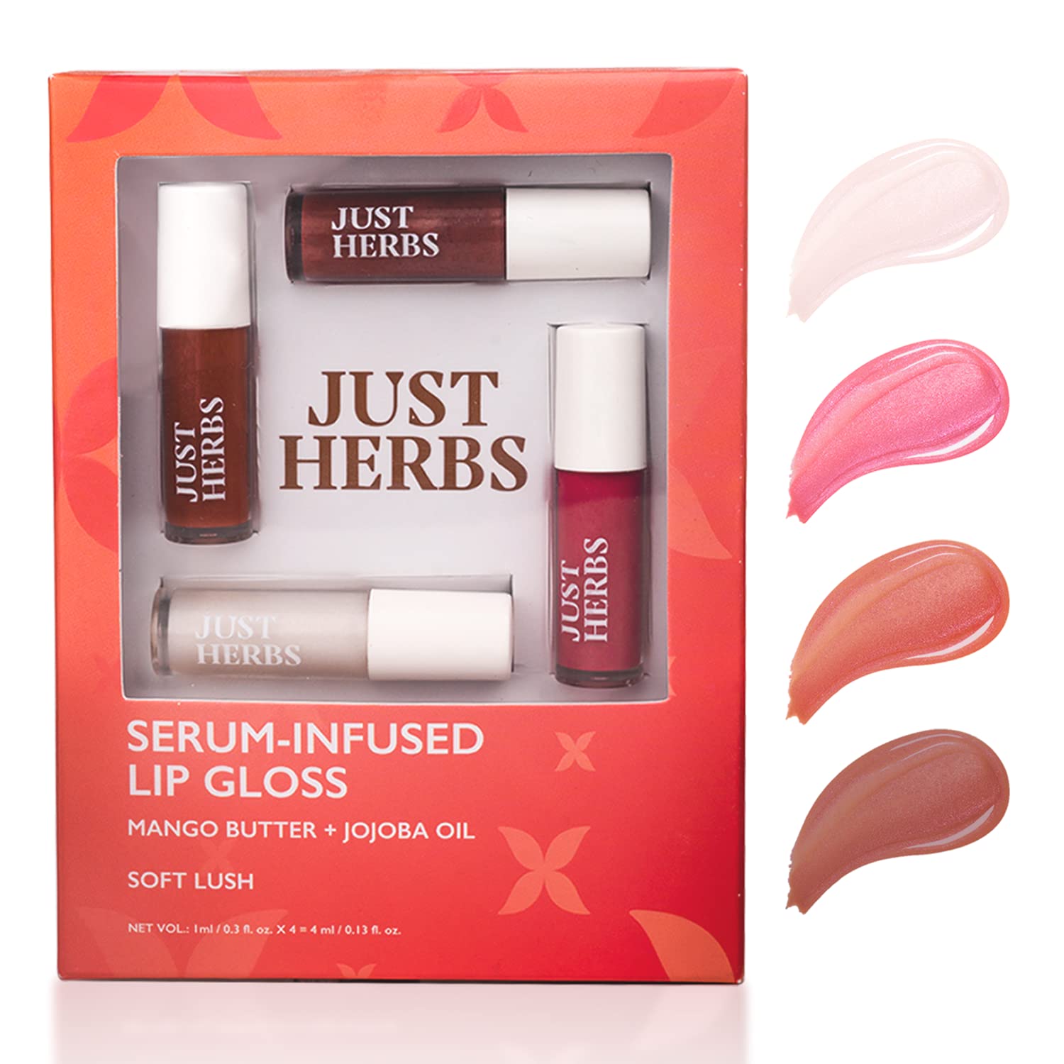 Just Herbs 4 IN 1 Lip Gloss for Women, Serum Infused Non-Sticky Glossy and Hydrating Lip Gloss 4g (Soft Lush)