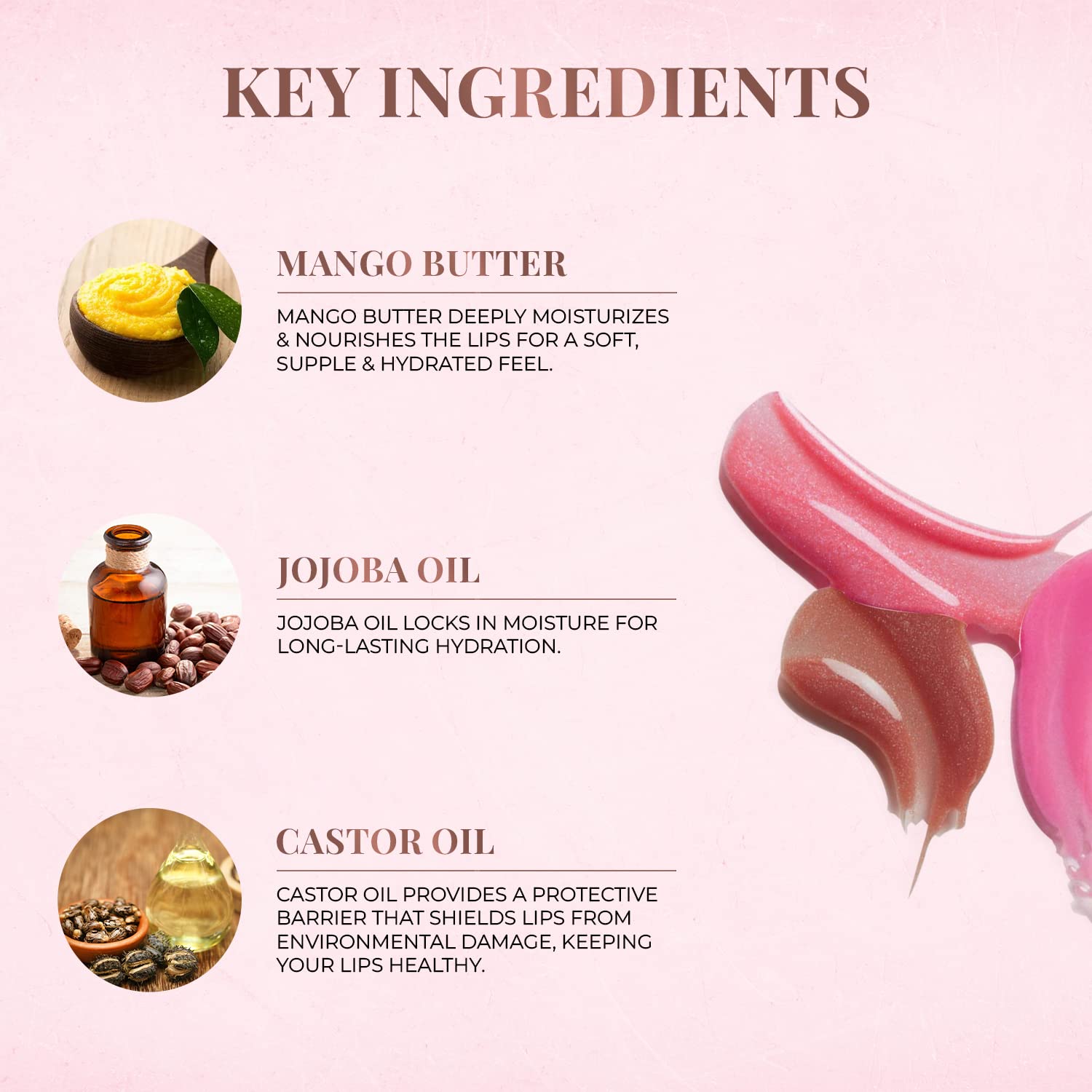- FREE FROM ALL THE NASTIES It is made with 100% herbal actives. Our lip gloss kit is vegan and contains no harmful parabens, silicones, or toxins. We never have & never will test on animals.