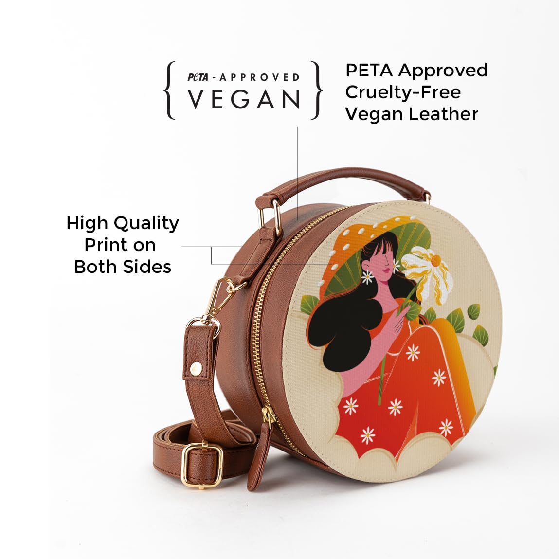 - Versatile Carrying Options: Featuring a detachable and adjustable travel sling bag, this leather bag round adapts to various carrying styles for different occasions, providing flexibility and comfort. Secure Compartment, Convenient & Functional. Outer Dimensions: Width: 19 cms | Height: 19 cms | Depth: 8.8 cms