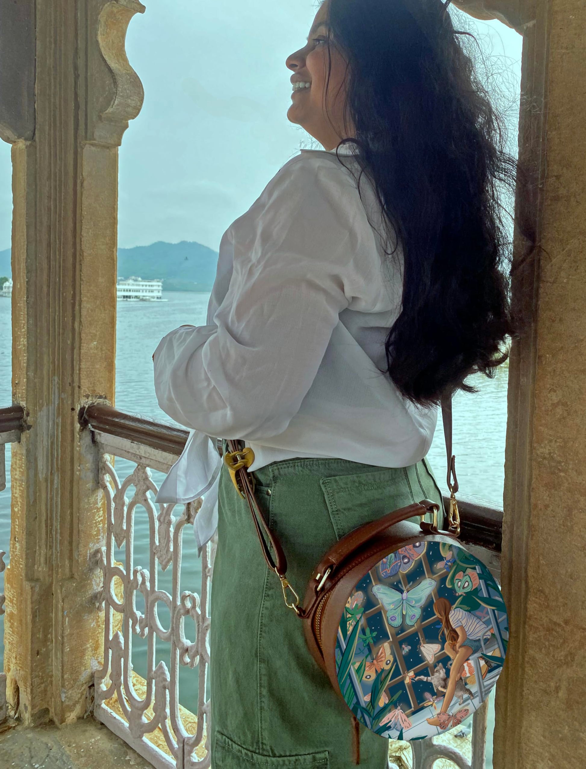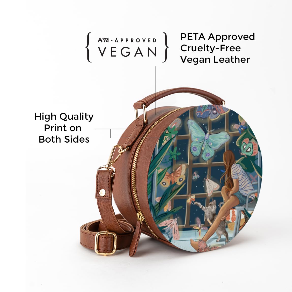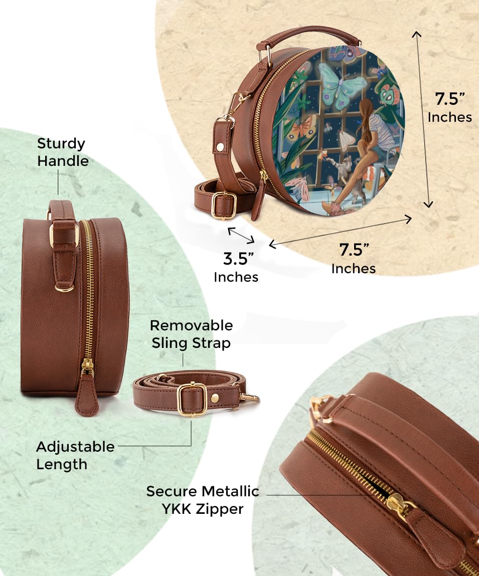 - Versatile Carrying Options: Featuring a detachable and adjustable travel sling bag, this leather bag round adapts to various carrying styles for different occasions, providing flexibility and comfort. Secure Compartment, Convenient & Functional. Outer Dimensions: Width: 19 cms | Height: 19 cms | Depth: 8.8 cms