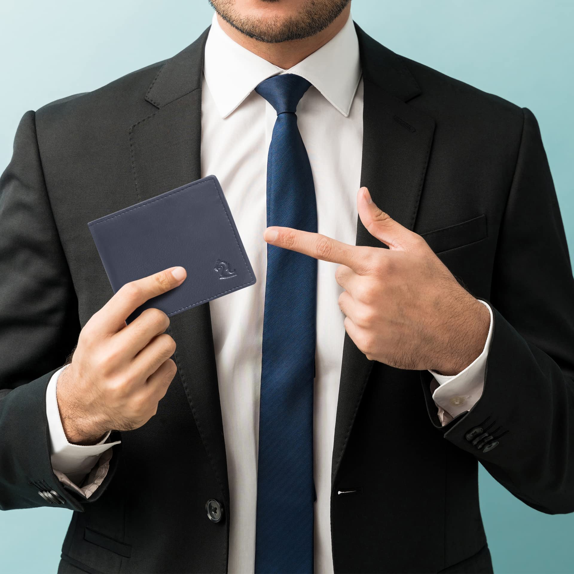 KARA Men's Blue Leather Wallet with 3 Card Holder Slot - Genuine Leather Wallets for Men