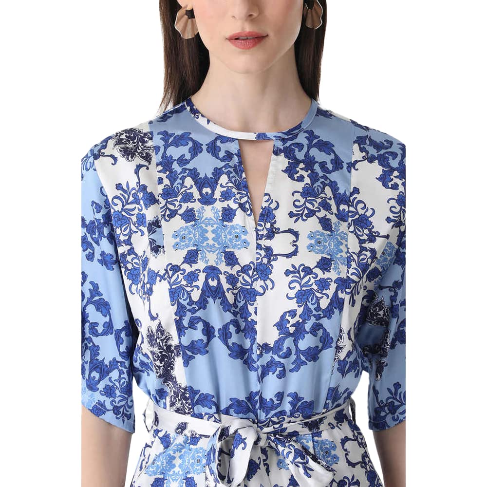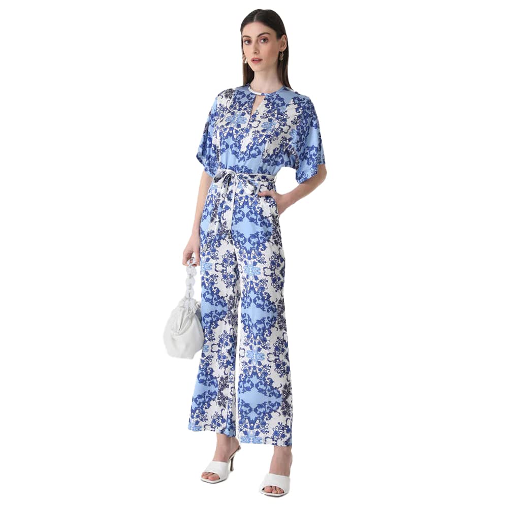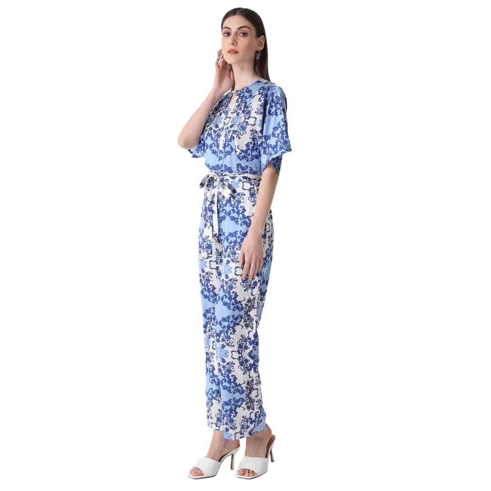 Kazo Solid Satin Regular Fit Womens Jumpsuit (BLUE MIX DARK, LARGE)
