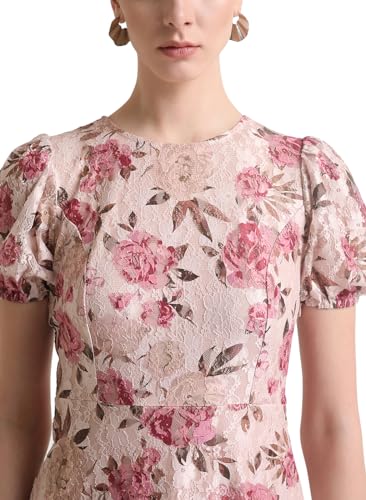 Kazo Women's Lace Fit and Flare Mini Dress (125456_Beige Combo