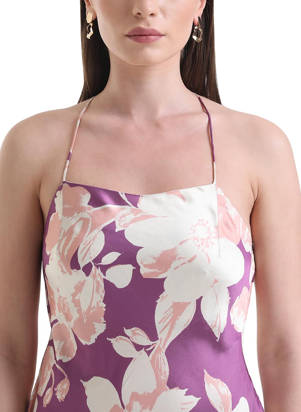 Kazo Women's Satin Fit and Flare Mini Dress (125295_Purple Combo