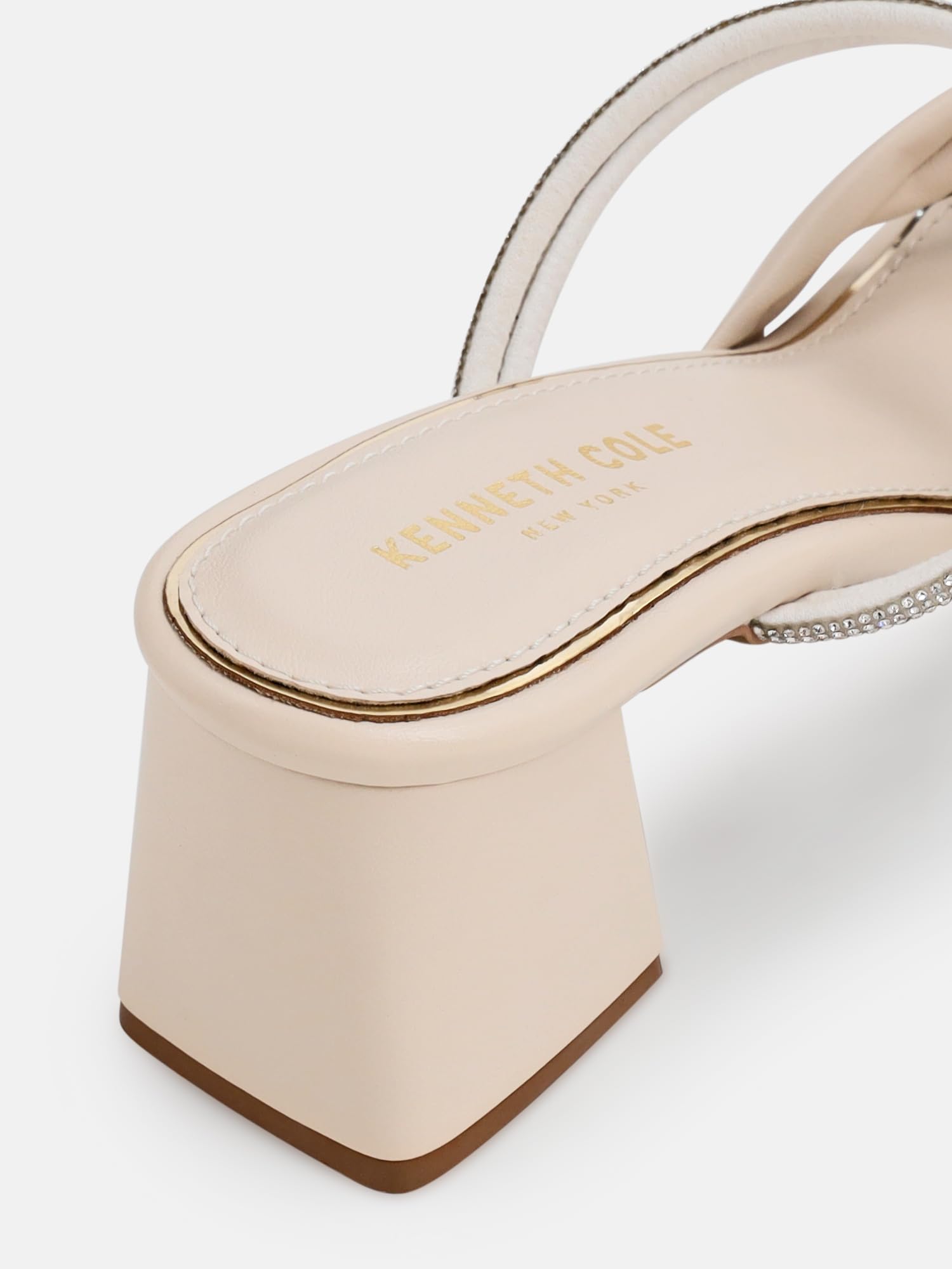 Kenneth Cole Women's Block Heel Mule Sandal | Premium Synthetic Upper | Ladies Open-Toe Slip-On | 2.5-inch Block Heel | Dazzling Crystal-Embellished Straps | Elegant Comfort, Stable Design & Versatile Style | Beige, EU38