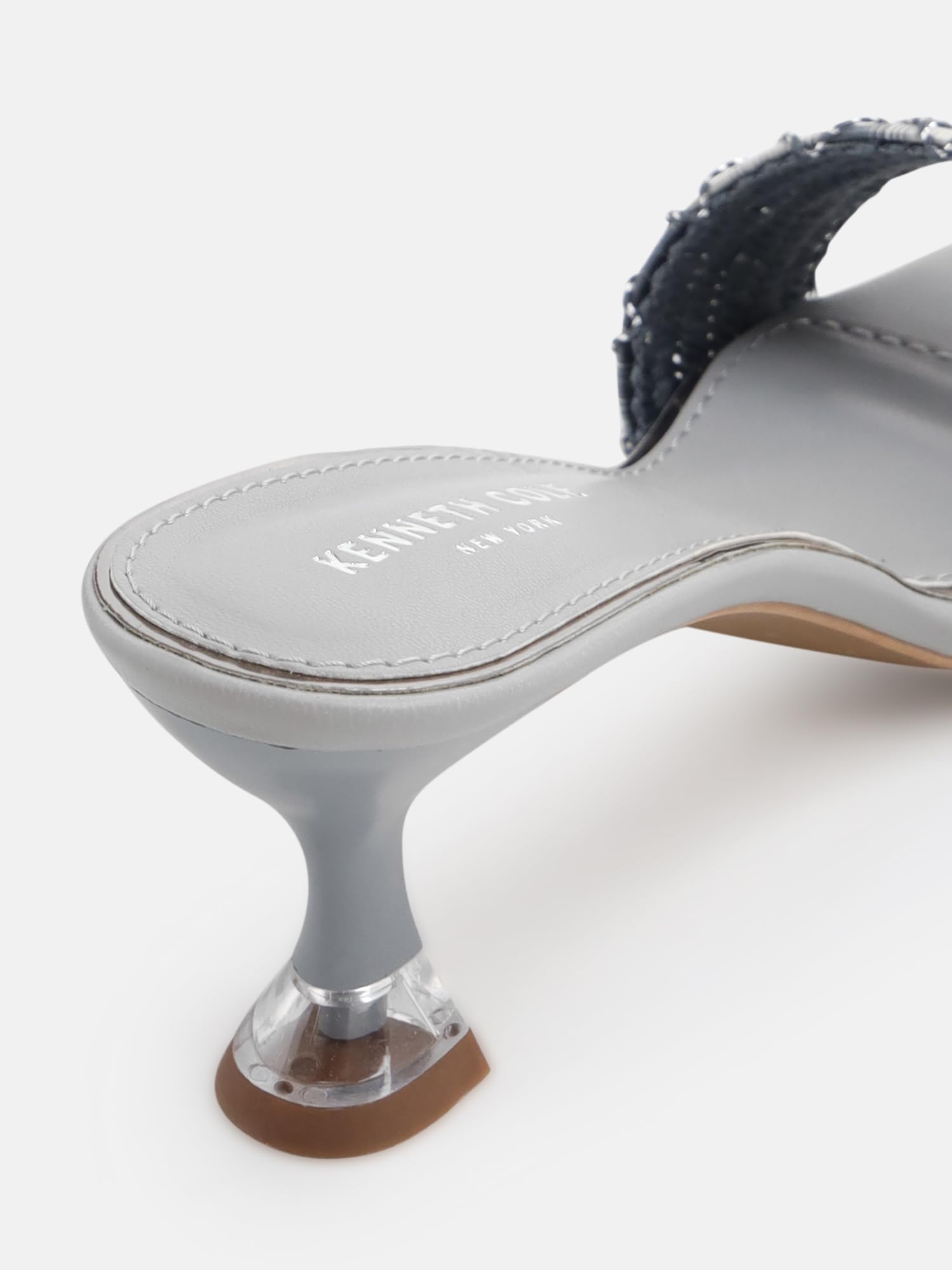 KENNETH COLE Women's Flare Heel Sandal | PU Upper | Square Toe, Woven Vamp Strap | Grey, EU36