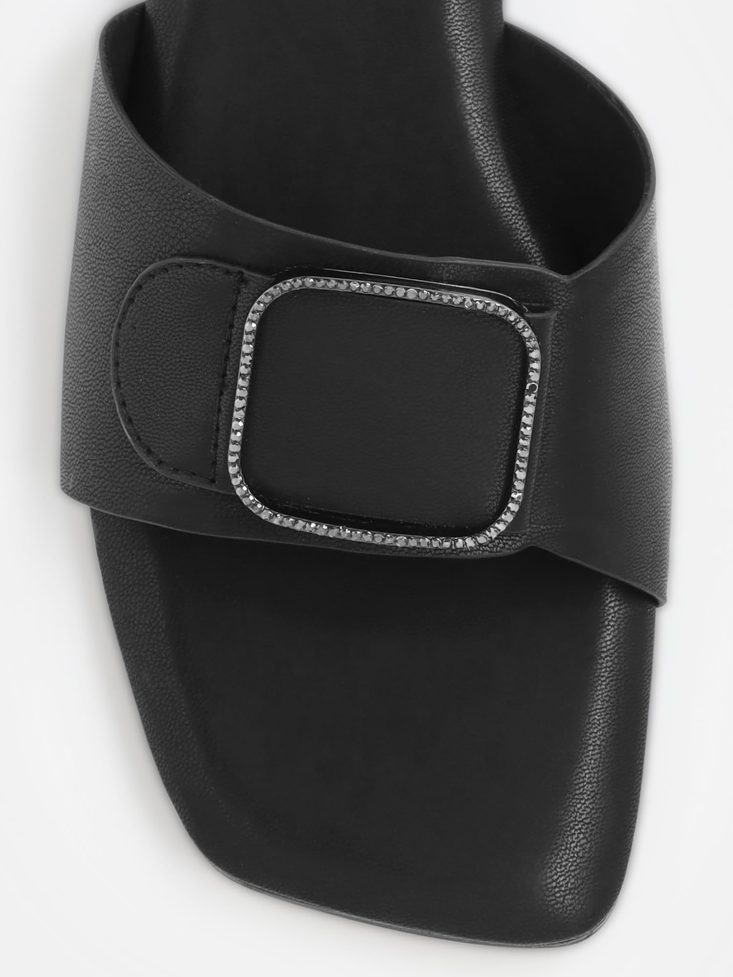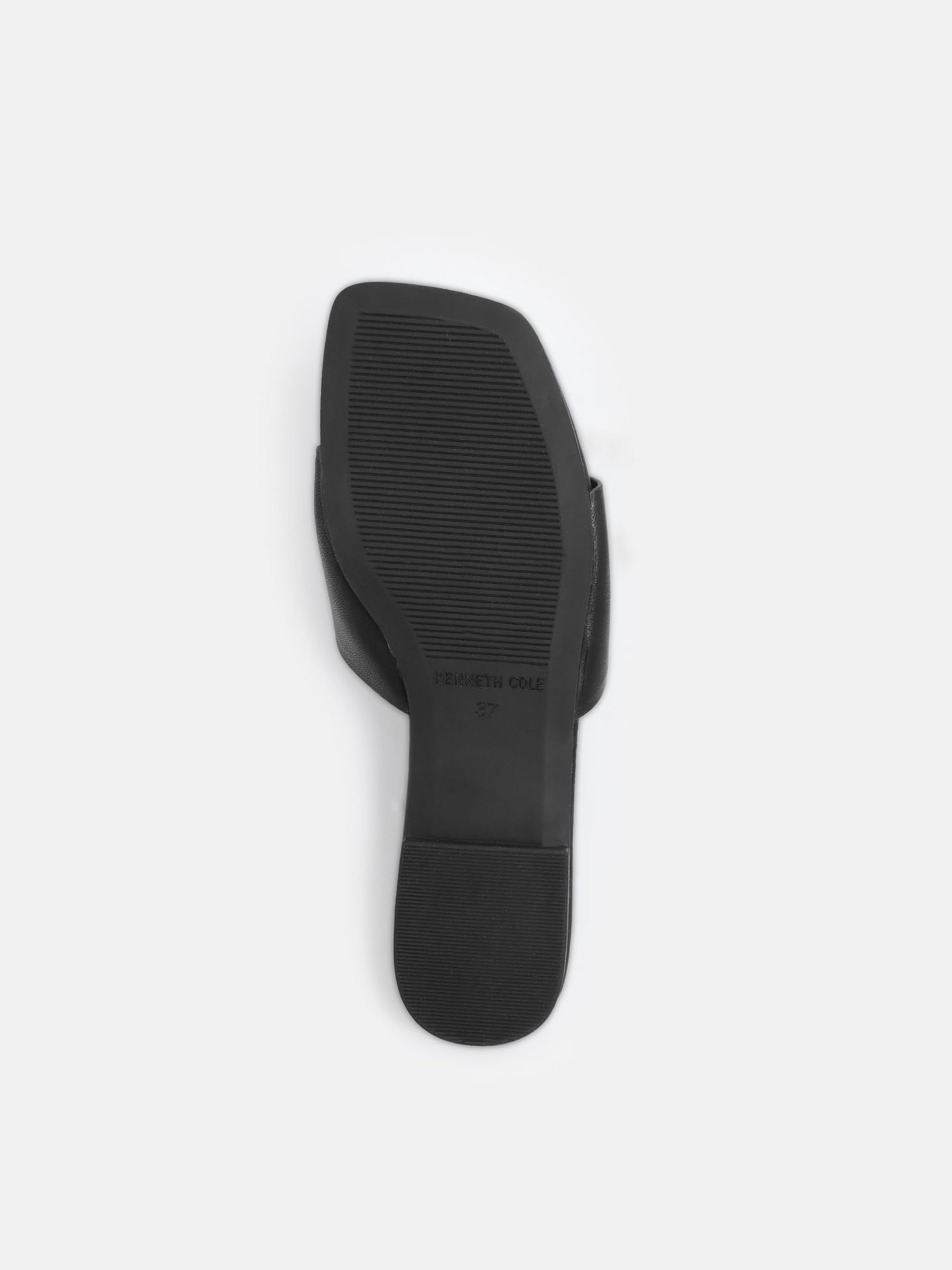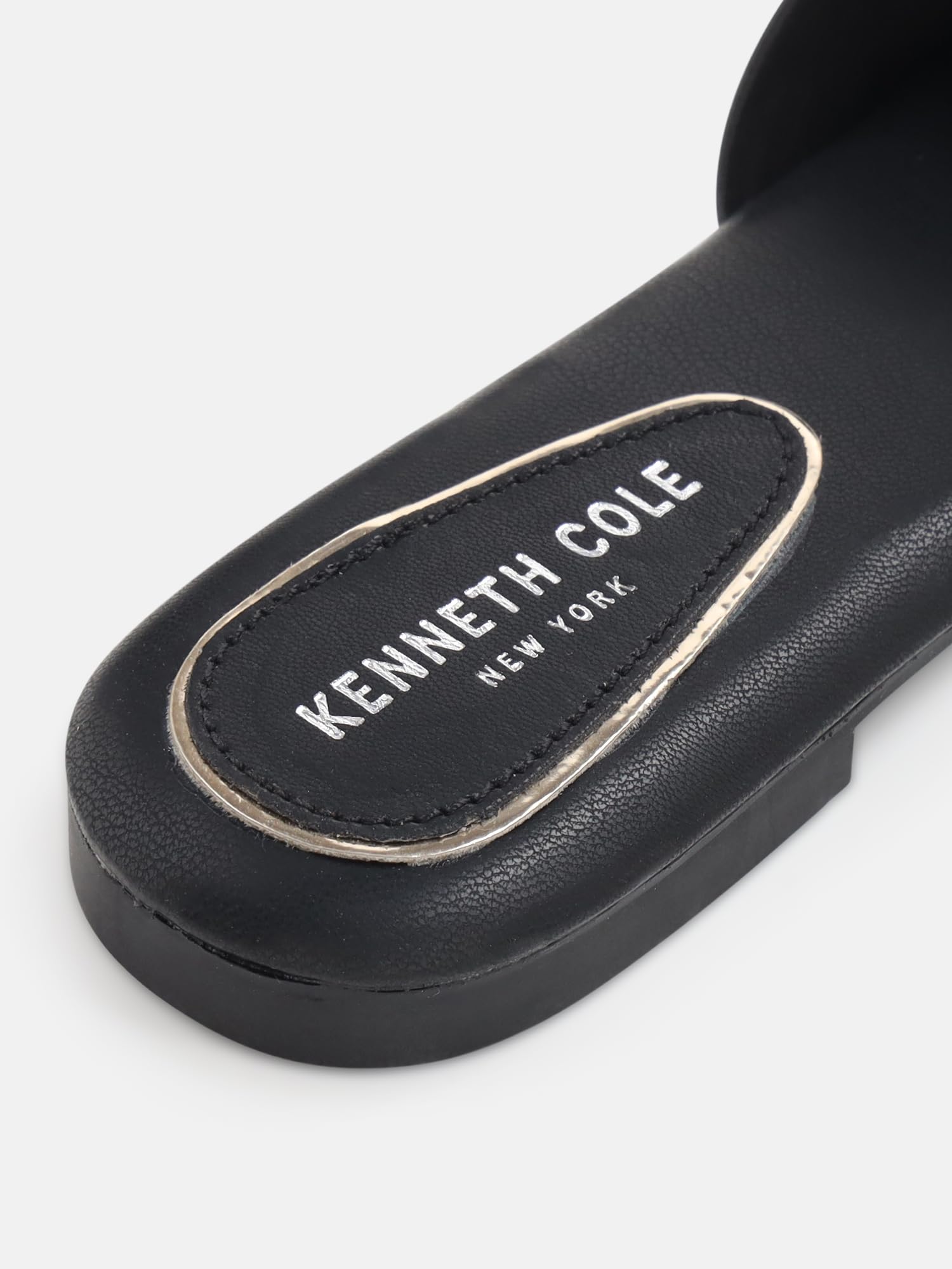 KENNETH COLE Women's Flat Slide Sandal | Synthetic | Square Toe, Rhinestone Buckle