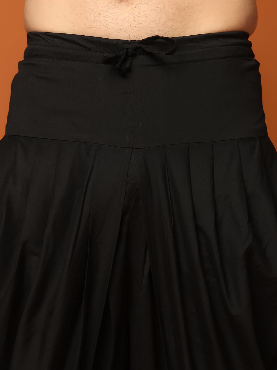 KISAH Men's Sherwani Dhoti Set, Silk Blend Full Sleaves, Knee Length, Straight, Regular Fit, Mandarin Collar Ethnic wear, 40 Black