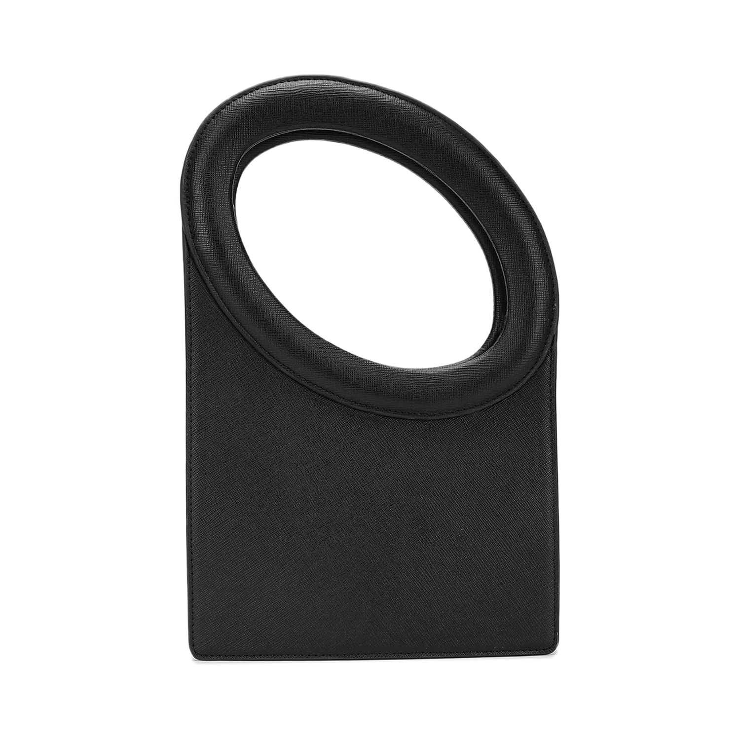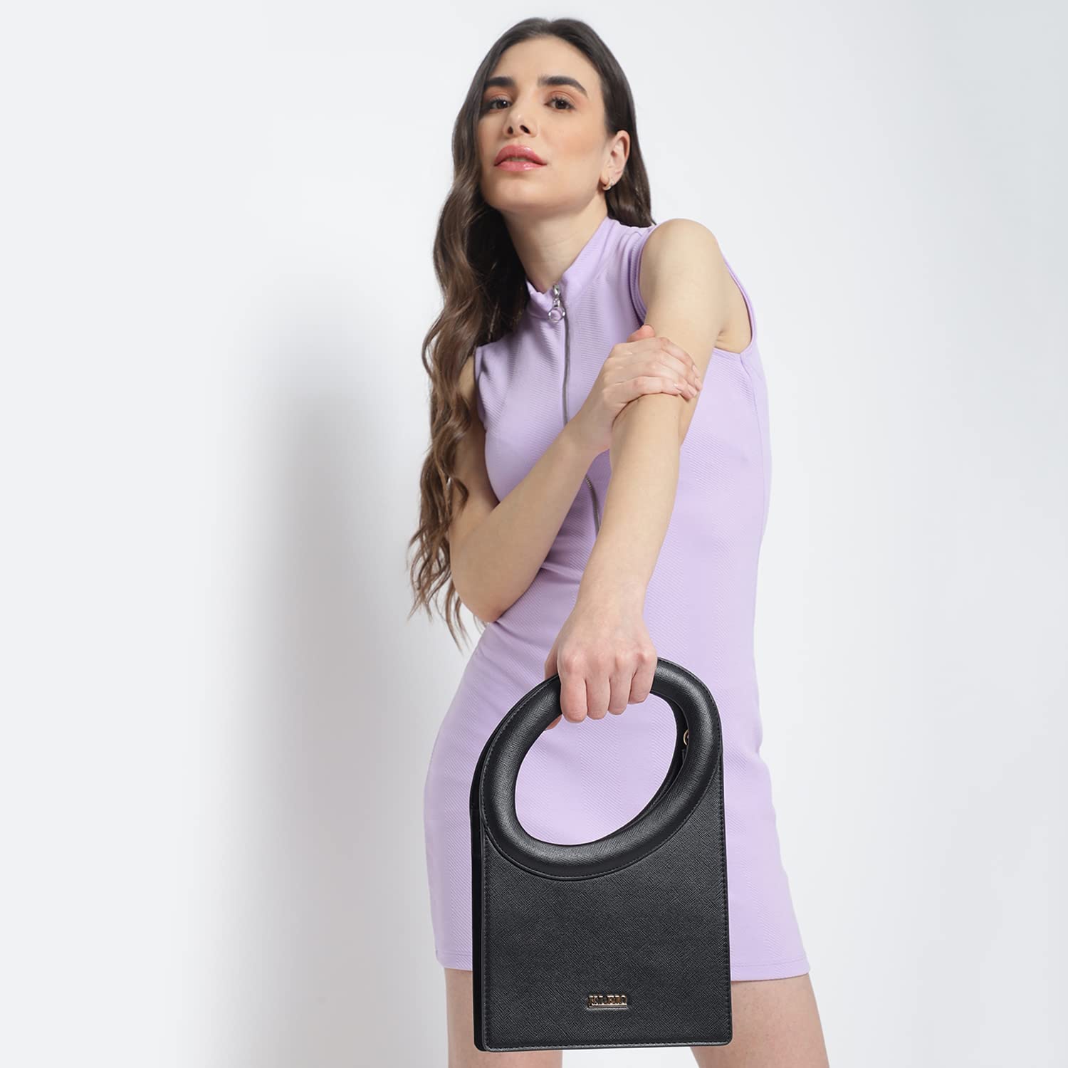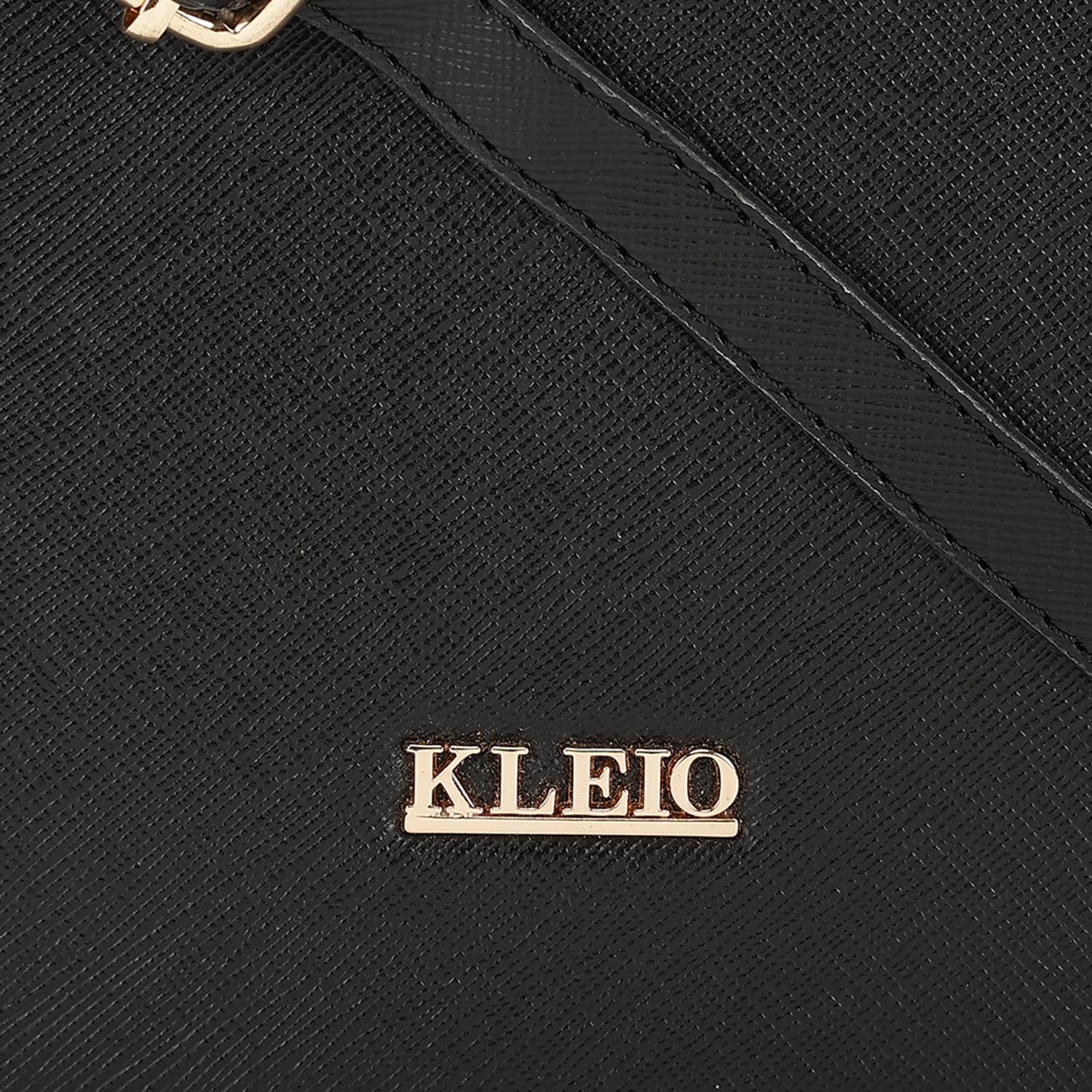 KLEIO Faux Leather Scupltural Shaped Top Handle Handbag with Detachable Sling for Women Ladies(HO9038KL-BL)(BLACK)